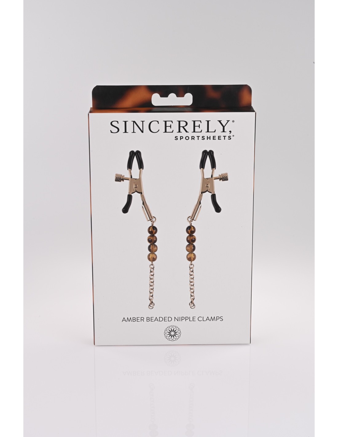 SPORTSHEETS PINZAS PARA PEZONES CON CUENTAS ÁMBAR