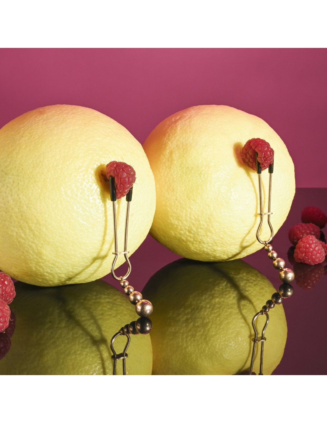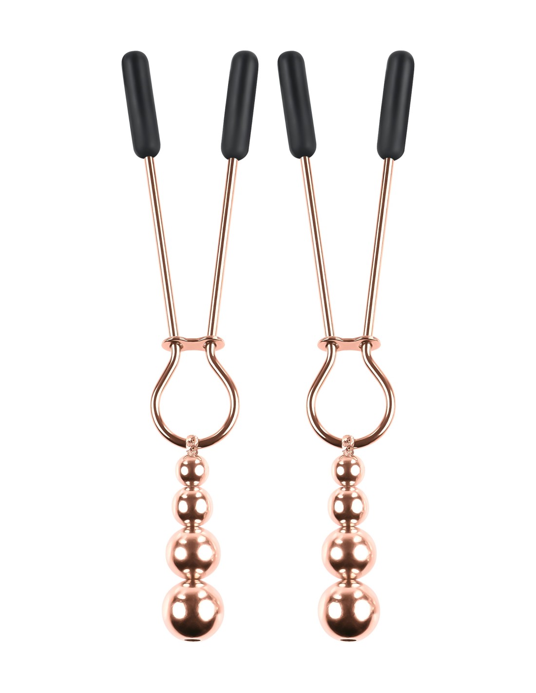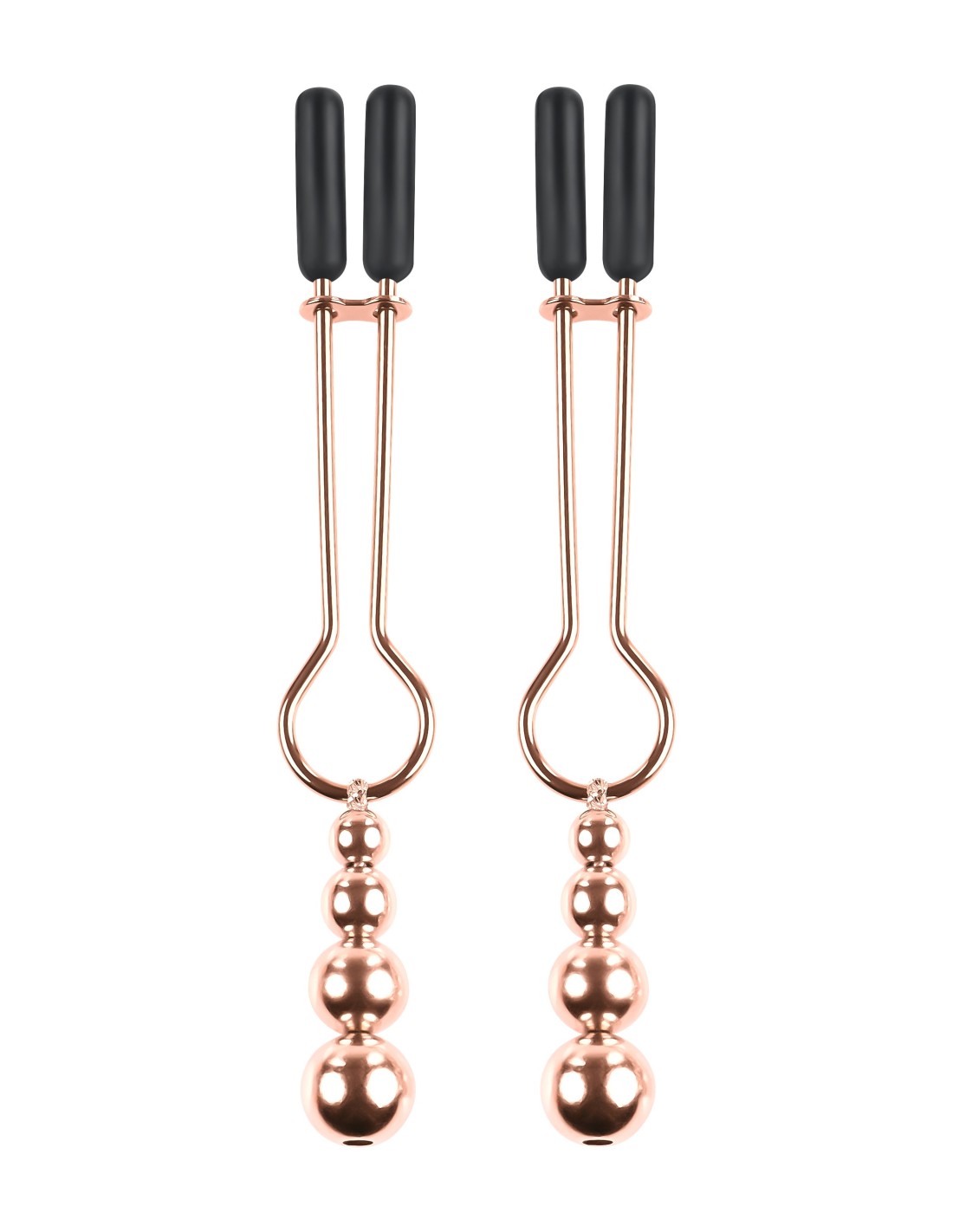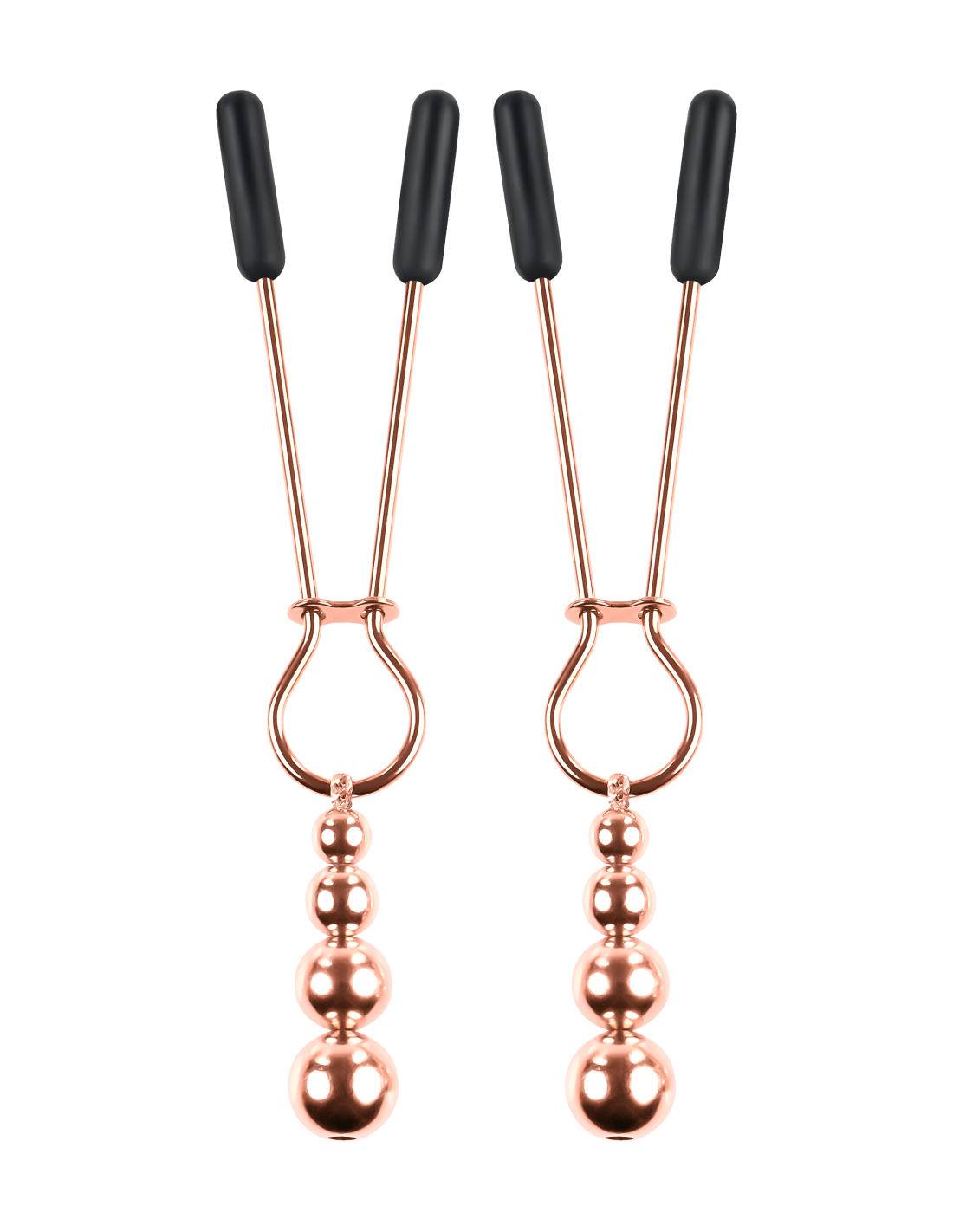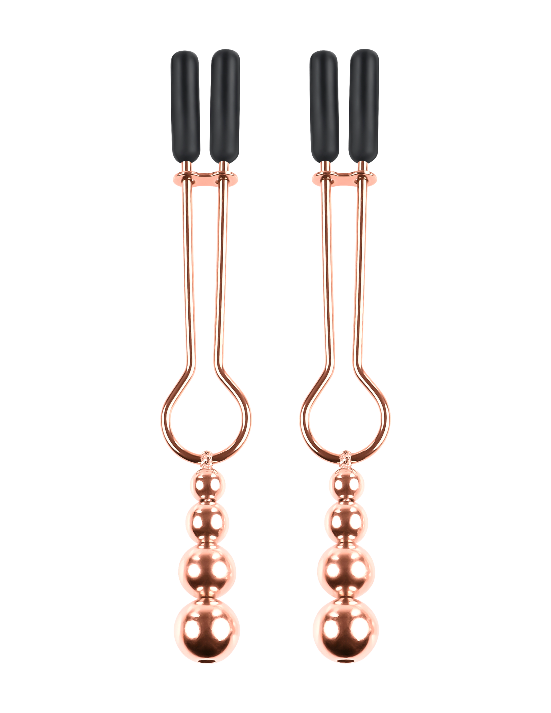 Descubra la sensación erótica de las pinzas para pezones con cuentas colgantes que brindan una deliciosa sensación de peso y un atractivo visual sexy.