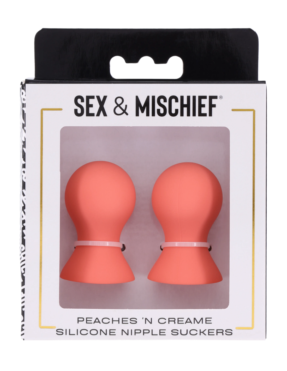 Estos chupones para pezones Peaches 'N CreaMe son aptos para principiantes y están diseñados para despertar tus sentidos. Hechos de silicona aterciopelada y segura para el cuerpo, crean un sello suave pero firme que atrae el flujo sanguíneo a tus puntos más sensibles, intensificando cada toque y provocando que tu cuerpo se desarrolle deliciosamente. Simplemente apriete los bulbos, colóquelos en los pezones y deje que la deliciosa succión se apodere de ellos, permaneciendo como un chupetón jugoso hasta que esté listo para soltar. Mejora la sensación con un toque de lubricante o un cálido movimiento de la lengua. Si anhelas una pizca de dolor o una deliciosa ola de placer, estos chupezones harán que cada momento tenga un sabor un poco más dulce.
