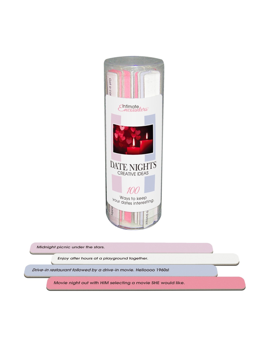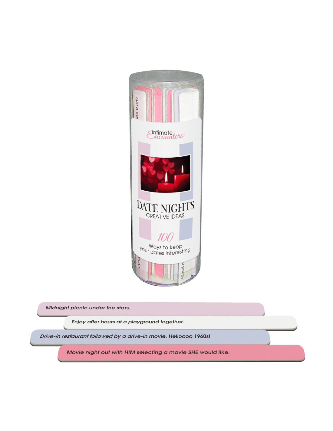 ¡100 maneras de mantener tus citas interesantes! Siempre que necesites una idea para una cita nocturna, selecciona una idea básica. Lee ambas caras del palo con tu pareja y elige la que deseas realizar. Nota: Es posible que desee exhibir estos palitos en un plato o recipiente decorativo. Incluye: 50 sticks con 100 ideas creativas.