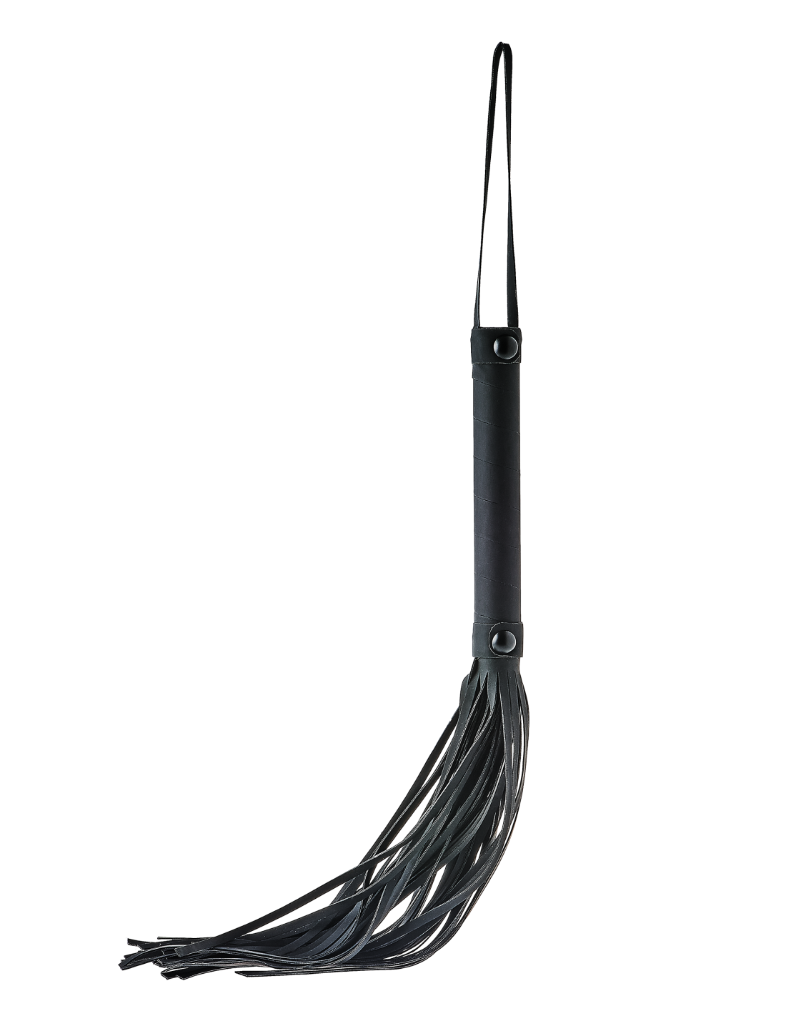 - Flogger negro con hebras de aspecto de cuero
