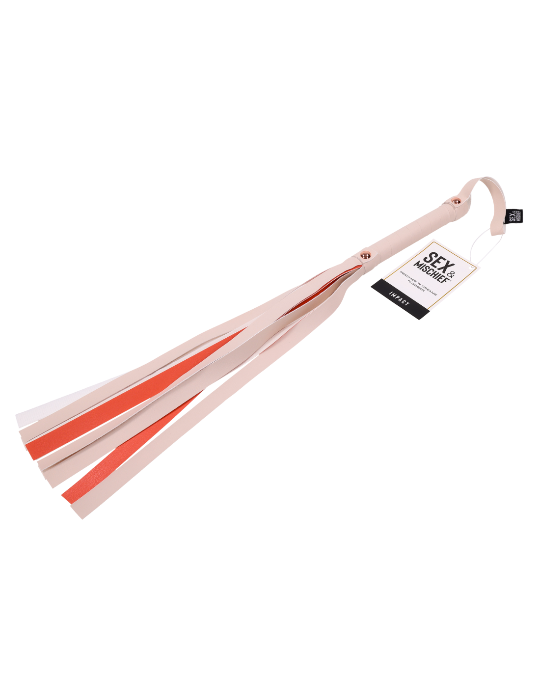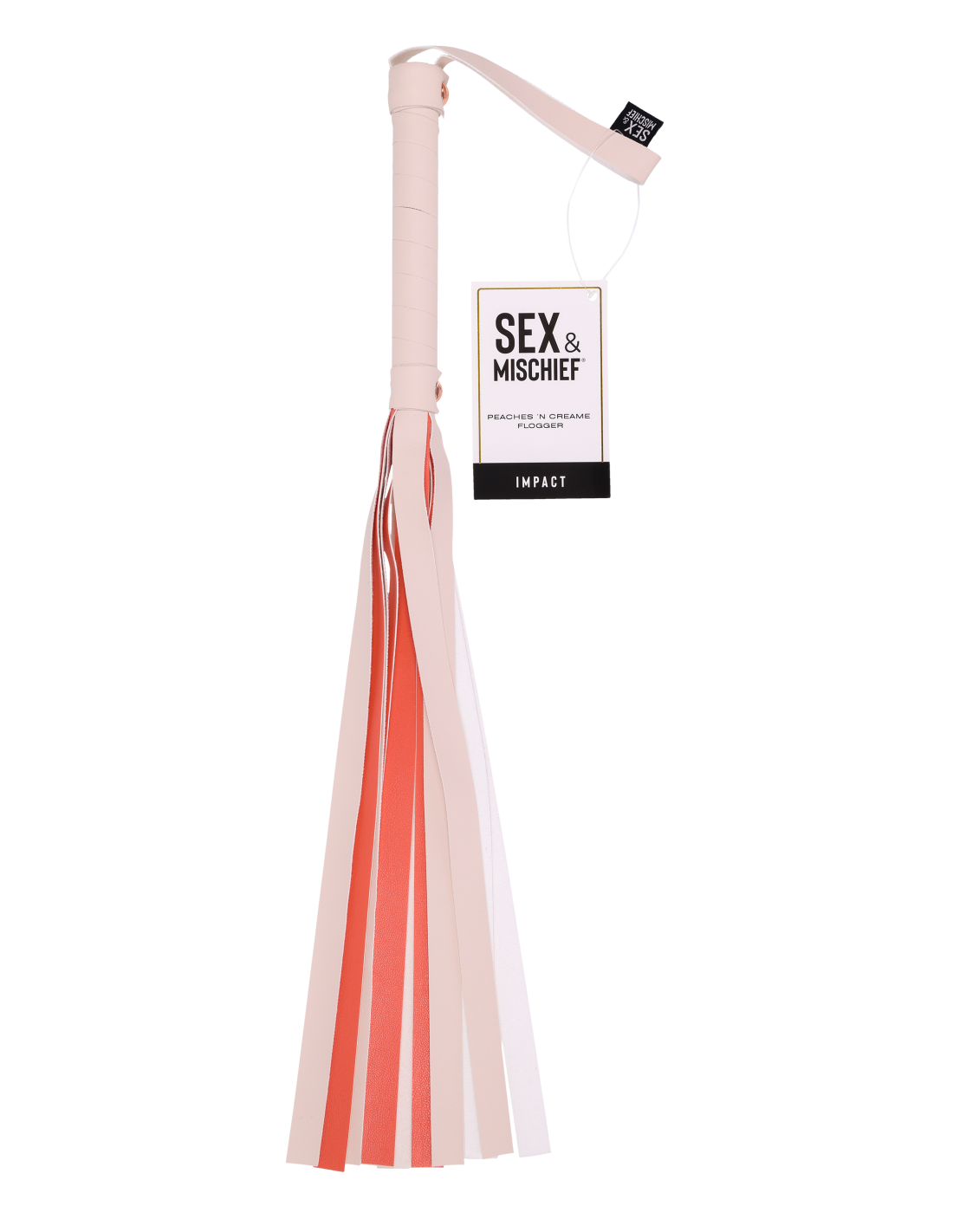 ¿Despertar un poco de emoción con el Peaches 'n CreaMe Flogger para un placer sádico que es a la vez un poco juguetón y muy divertido? Experimenta una fusión coqueta de vibraciones brillantes y burlonas junto con una pasión lúdica. Confeccionado con amor y piel sintética de color melocotón, es tan dulce como atrevido. El mango a rayas agrega un toque de fantasía, lo que hace que sea una delicia sostenerlo y un placer manejarlo. ¡Agregue un toque de placer colorido con cada golpe satisfactorio a su pareja y déjela sonrojarse de placer!