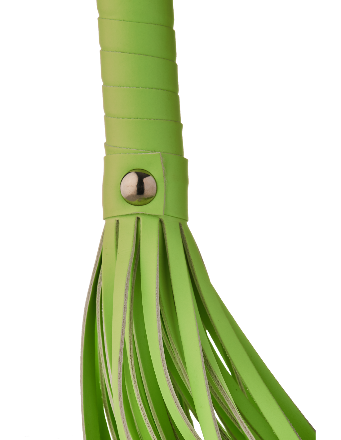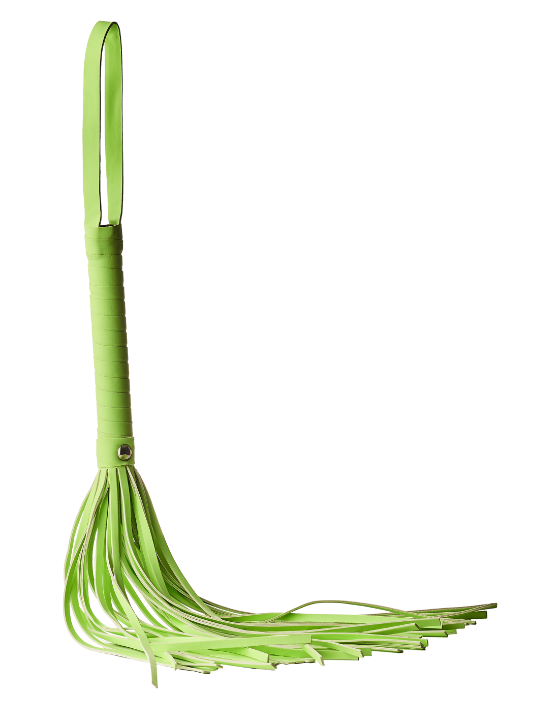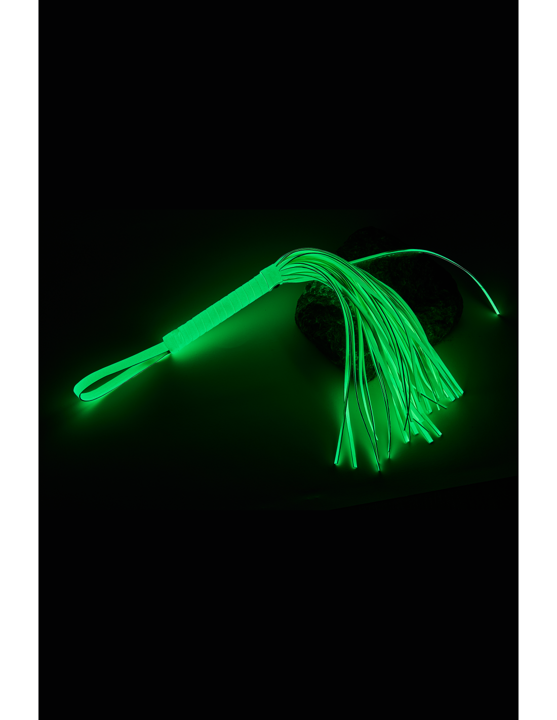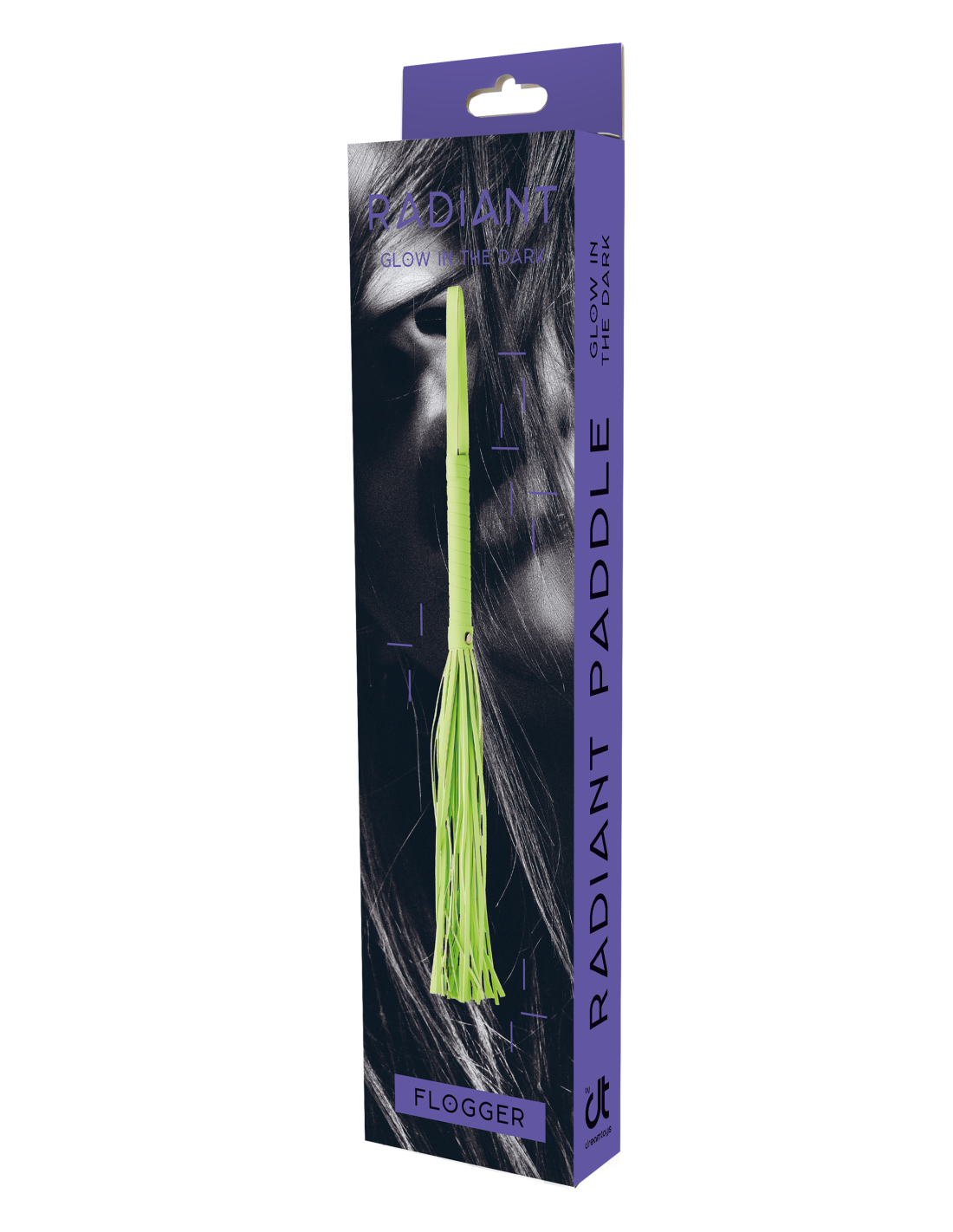 Flogger que brilla en la oscuridad de la marca Radiant de Dream Toys con hilos de imitación de cuero de 30 cm de largo. El flogger tiene un mango fuerte y resistente de fácil agarre hecho del mismo material con un práctico cordón para la muñeca. Diseñado para satisfacer tus deseos más eróticos. ¡Traza suavemente el cuerpo de tu amante para generar anticipación y aumenta la velocidad con latigazos cortos y afilados para convertir la diversión en un placer impresionante! ¡El efecto que brilla en la oscuridad lo hace aún más emocionante!