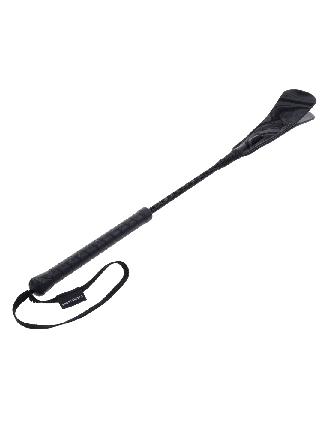 - Crop de 19,5 pulgadas / 50 cm de largo con punta de cuero sintético de 7 pulgadas / 18 cm