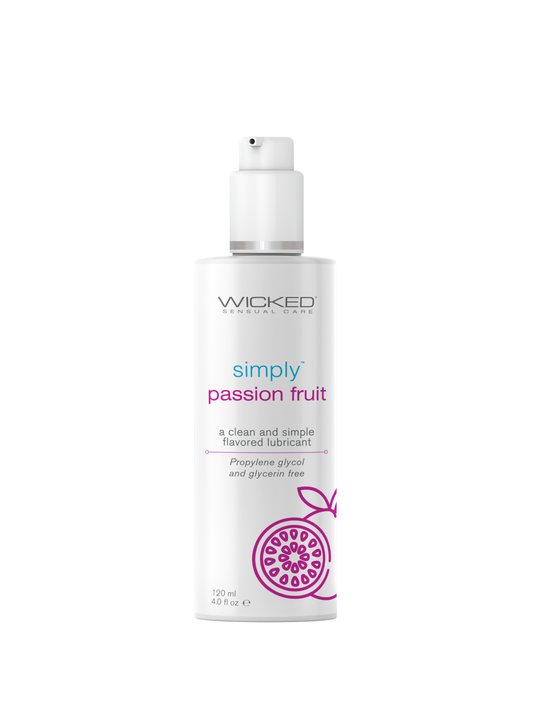 Maximiza tu pasión con el lubricante a base de agua de maracuyá Simply™. Wicked acaba de hacer que la hora de jugar sea simplemente deliciosa. Simply™ Passion Fruit es un lubricante con sabor limpio y sencillo.