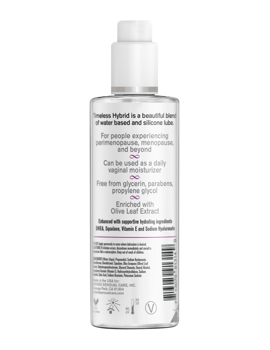Timeless Hybrid es una hermosa mezcla de lubricante a base de agua y silicona, enriquecida aún más con ingredientes de apoyo.