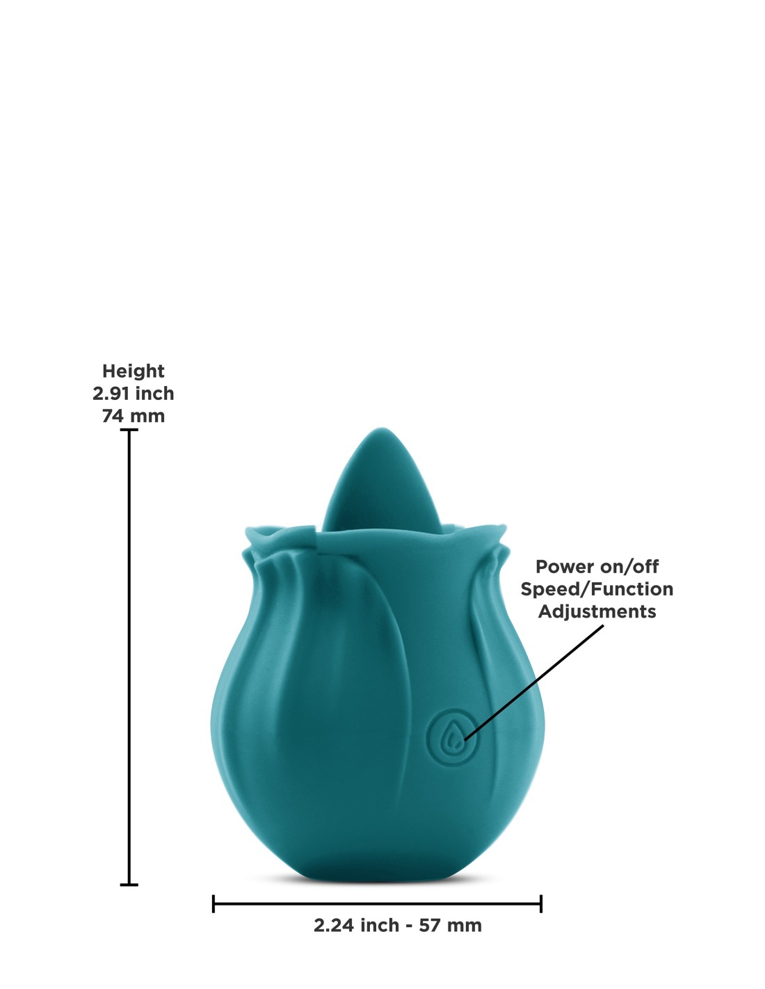 Beso de INYA. Bellamente elaborado con un llamativo diseño de capullo de rosa, Kiss estimula el clítoris con rápidas vibraciones de la lengua para un clímax intenso. Fabricado en silicona suave, es recargable y apto para viajes.