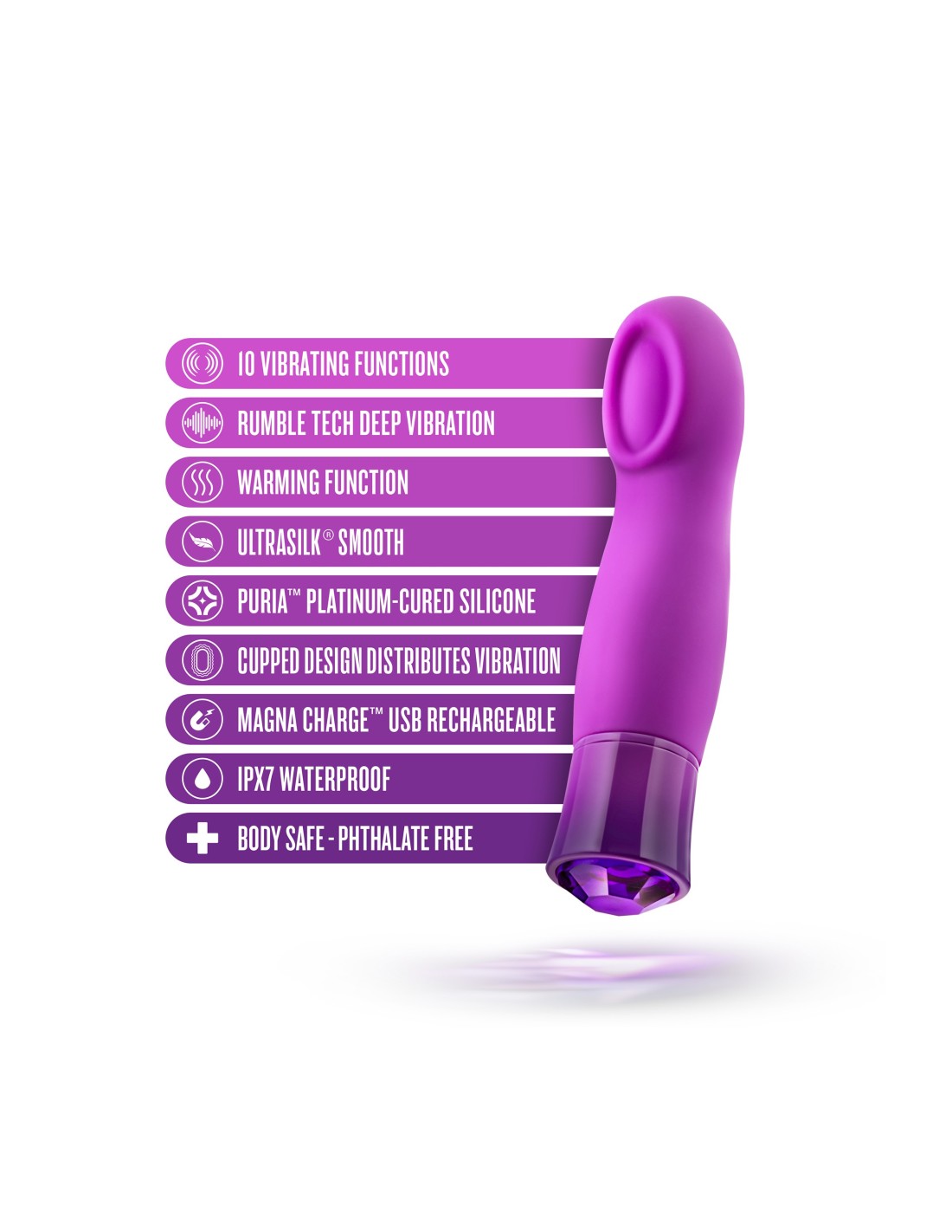 - 10 potentes funciones de vibración: 5 velocidades y 5 patrones