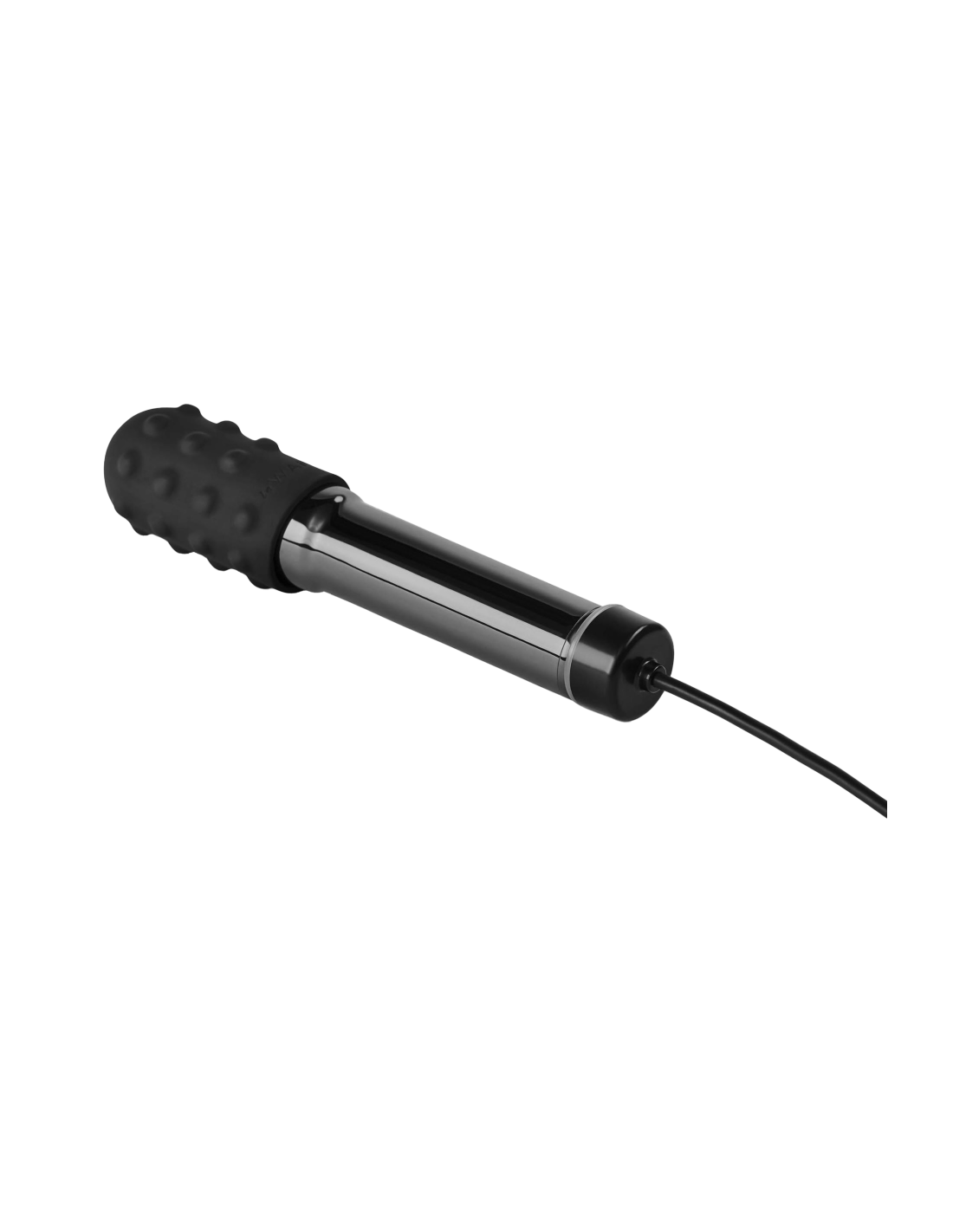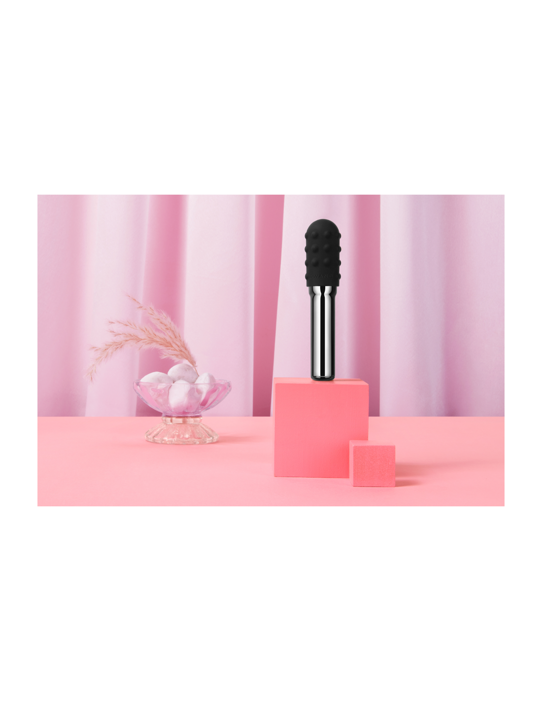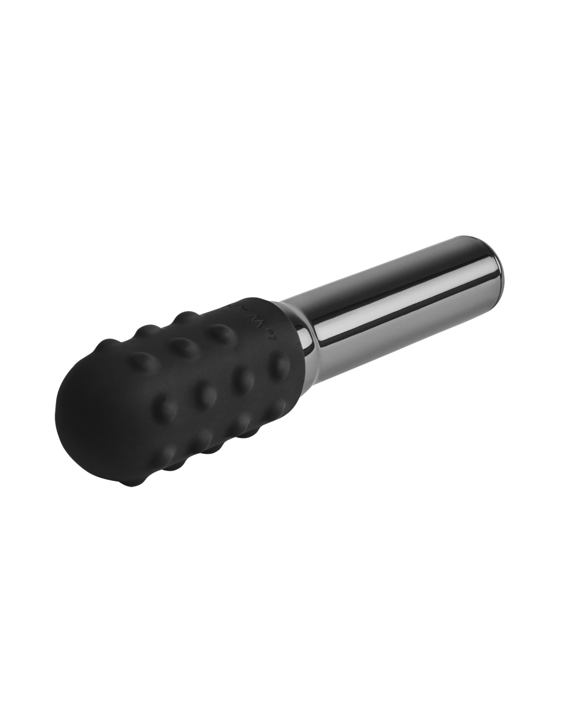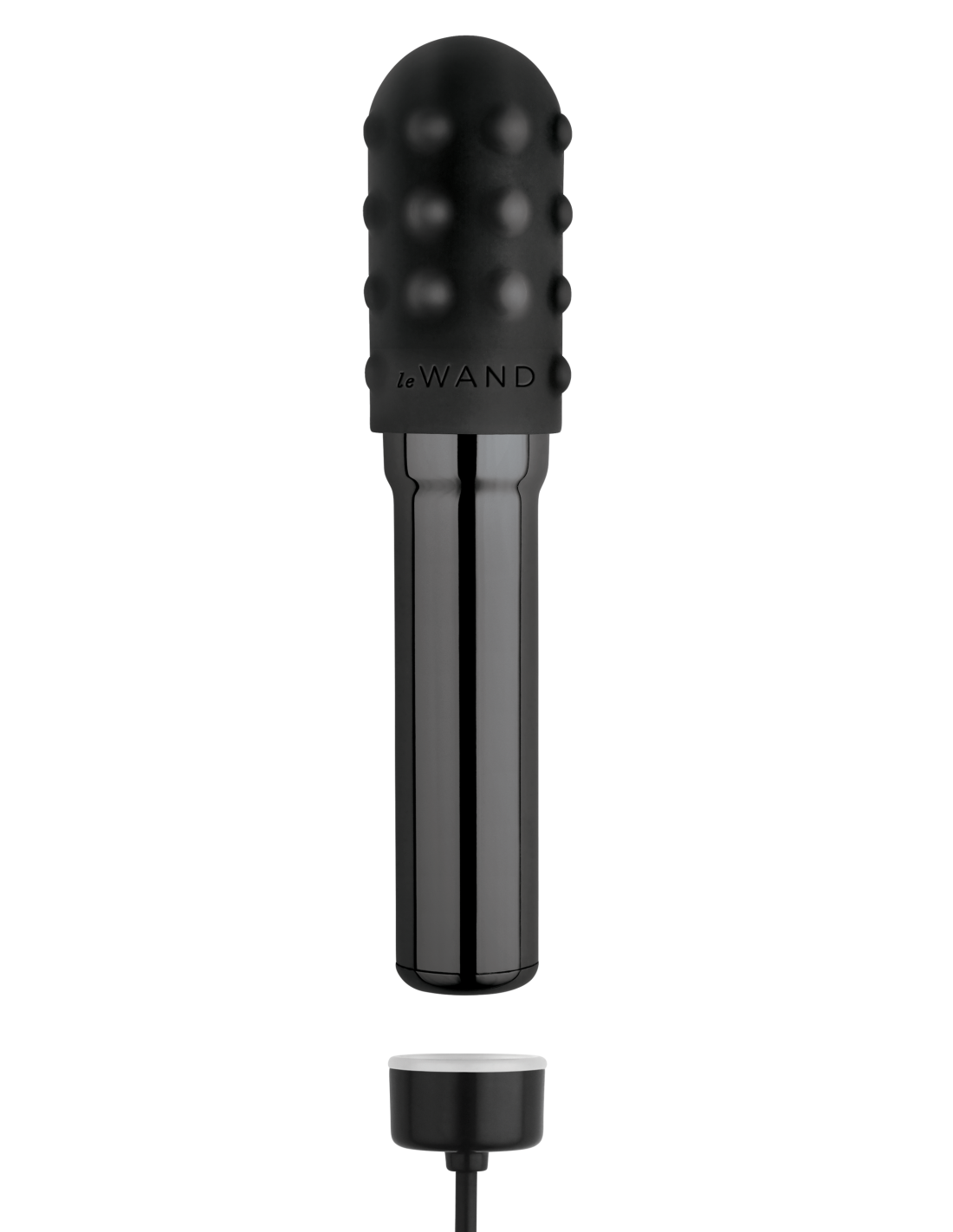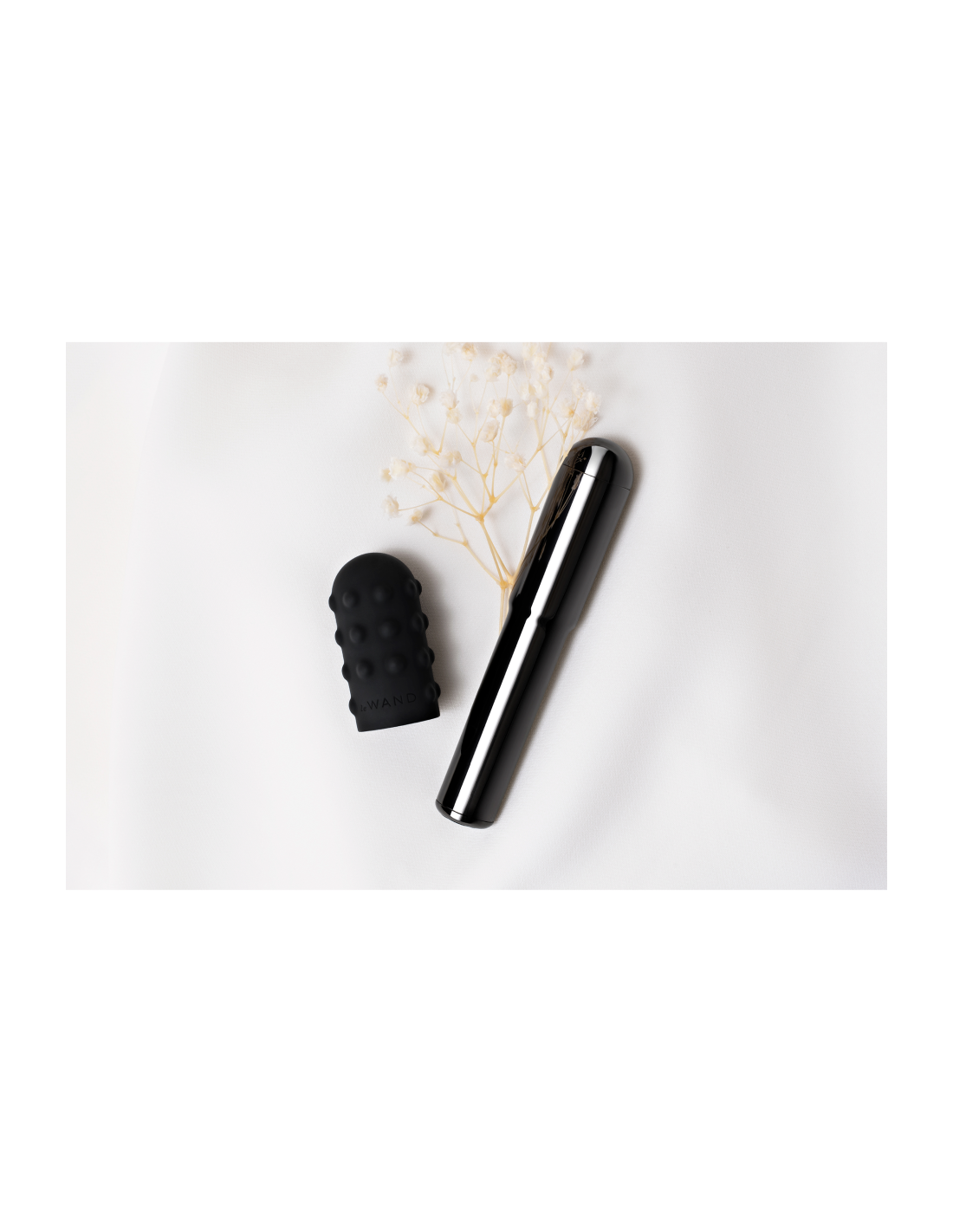 Le Wand Grand Bullet, vibrador recargable con anillo texturizado de silicona. LE WAND Grand Bullet es la versión más grande del vibrador de forma cónica que te guiará a lugares fantásticos después de tu viaje de masturbación. Lo que diferencia al Grand Bullet es su estructura en forma de tubo que se estrecha hacia afuera en la parte superior, lo que le da al juguete un asa para aquellos que necesitan un agarre más seguro. El Grand Bullet también tiene un 40 % más de potencia que su homólogo más pequeño para jugadores avanzados que quieren un toque más fuerte cuando llegan al clímax. El Grand Bullet es seguro para el cuerpo, recargable por USB y viene con una funda de silicona texturizada extraíble para mayor placer.El juego completo incluye: