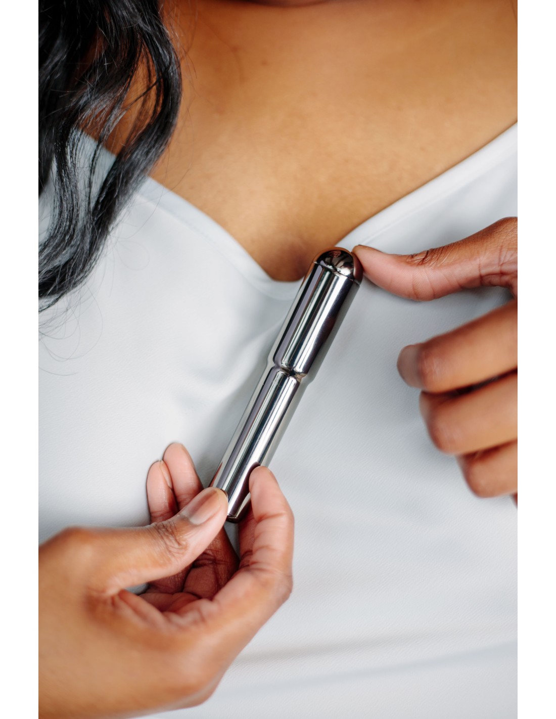 Chrome es una colección de vibradores potentes, portátiles y adaptables a una amplia gama de situaciones. Utilice nuestra vibración Bullet para un rapidito increíble en la oficina de su casa, el Deux como una herramienta para conciliar el sueño en noches inquietas, o vaya directamente al "Punto" para un ~empuje~ alucinante y retumbante durante el sexo en pareja. Nuestros minivibradores pueden parecer simples, pero la potencia y el diseño cuidadoso de la Colección Chrome permiten que cada uno de los productos cumpla múltiples funciones diferentes para todos, desde principiantes en vibradores hasta buscadores de placer de nivel avanzado.