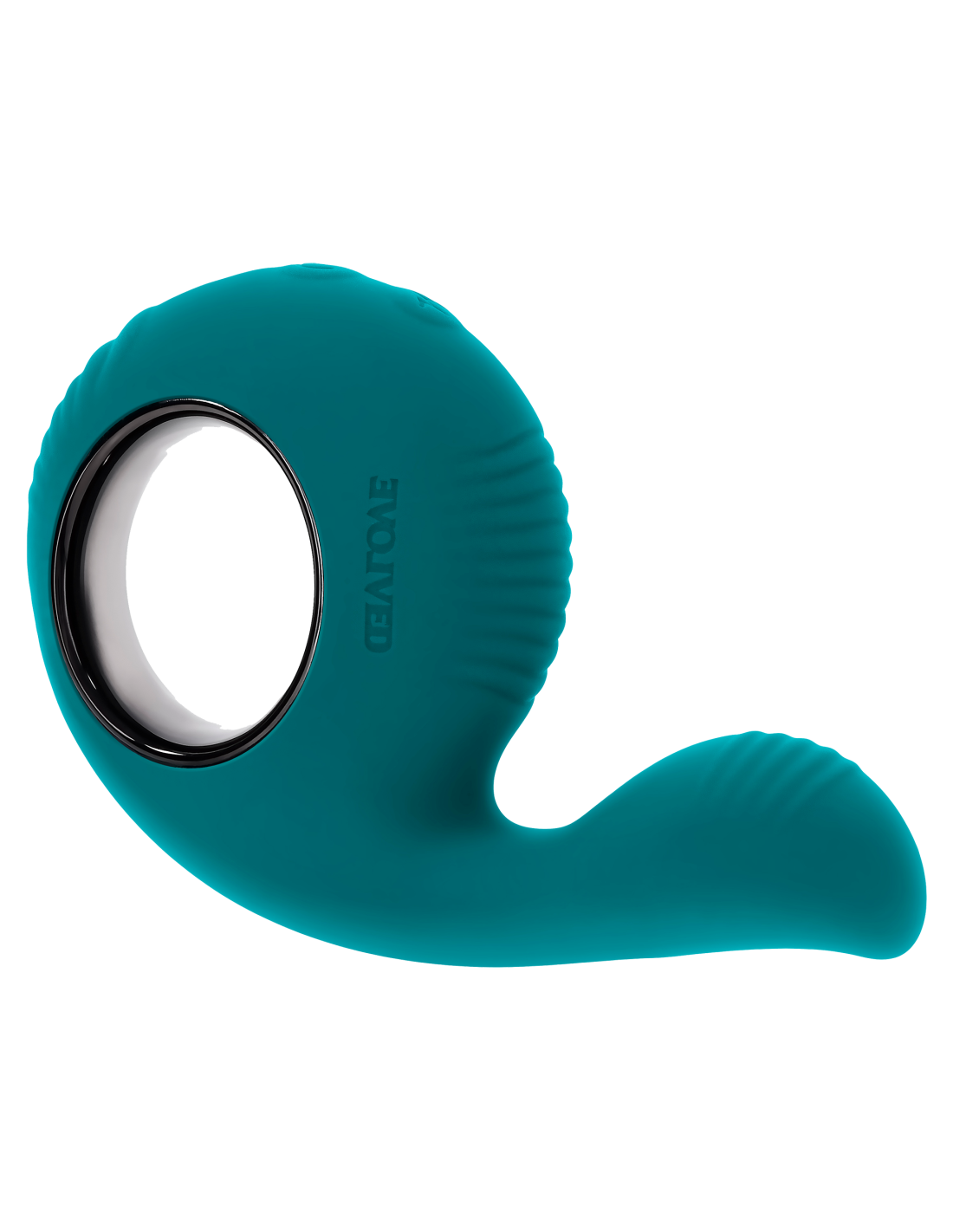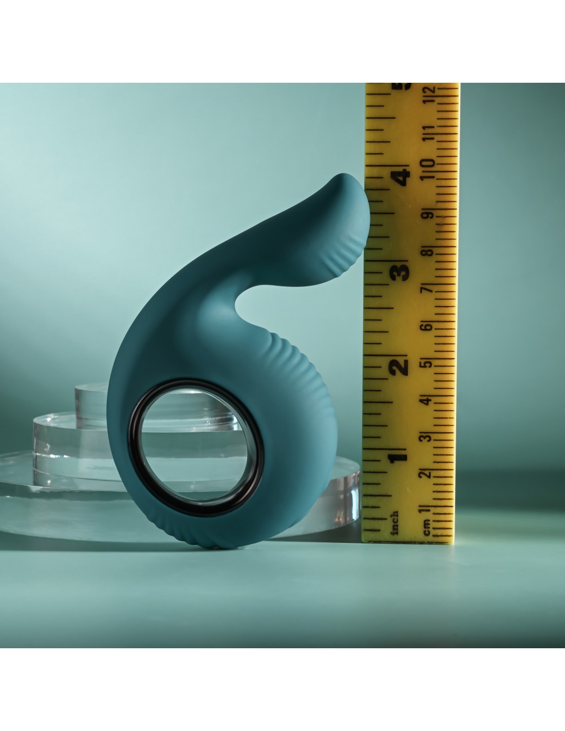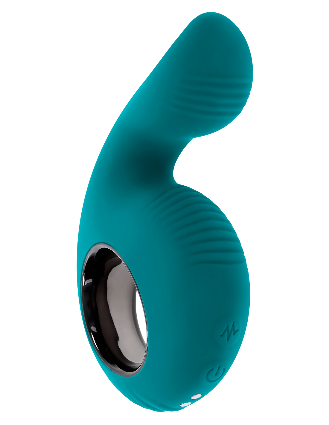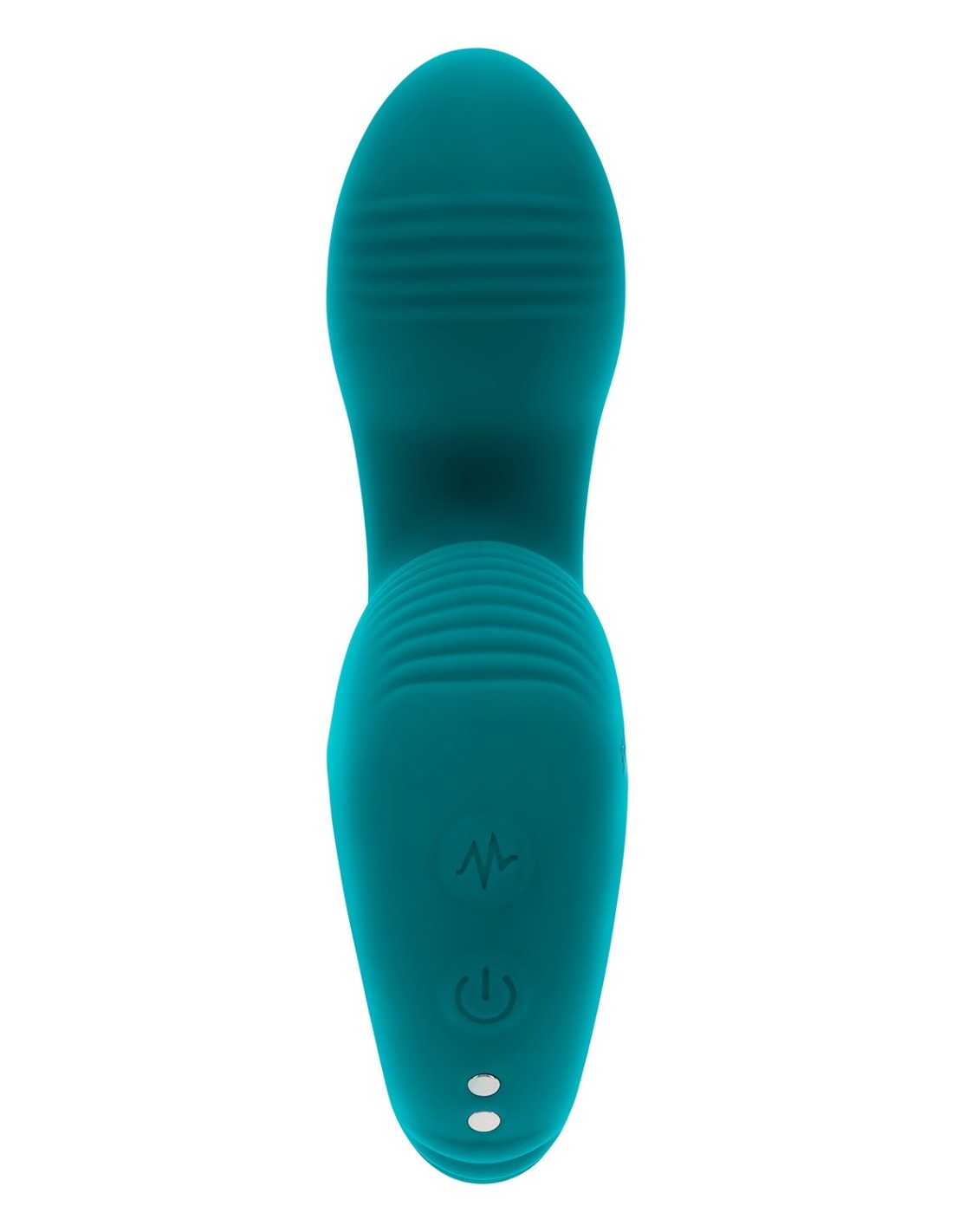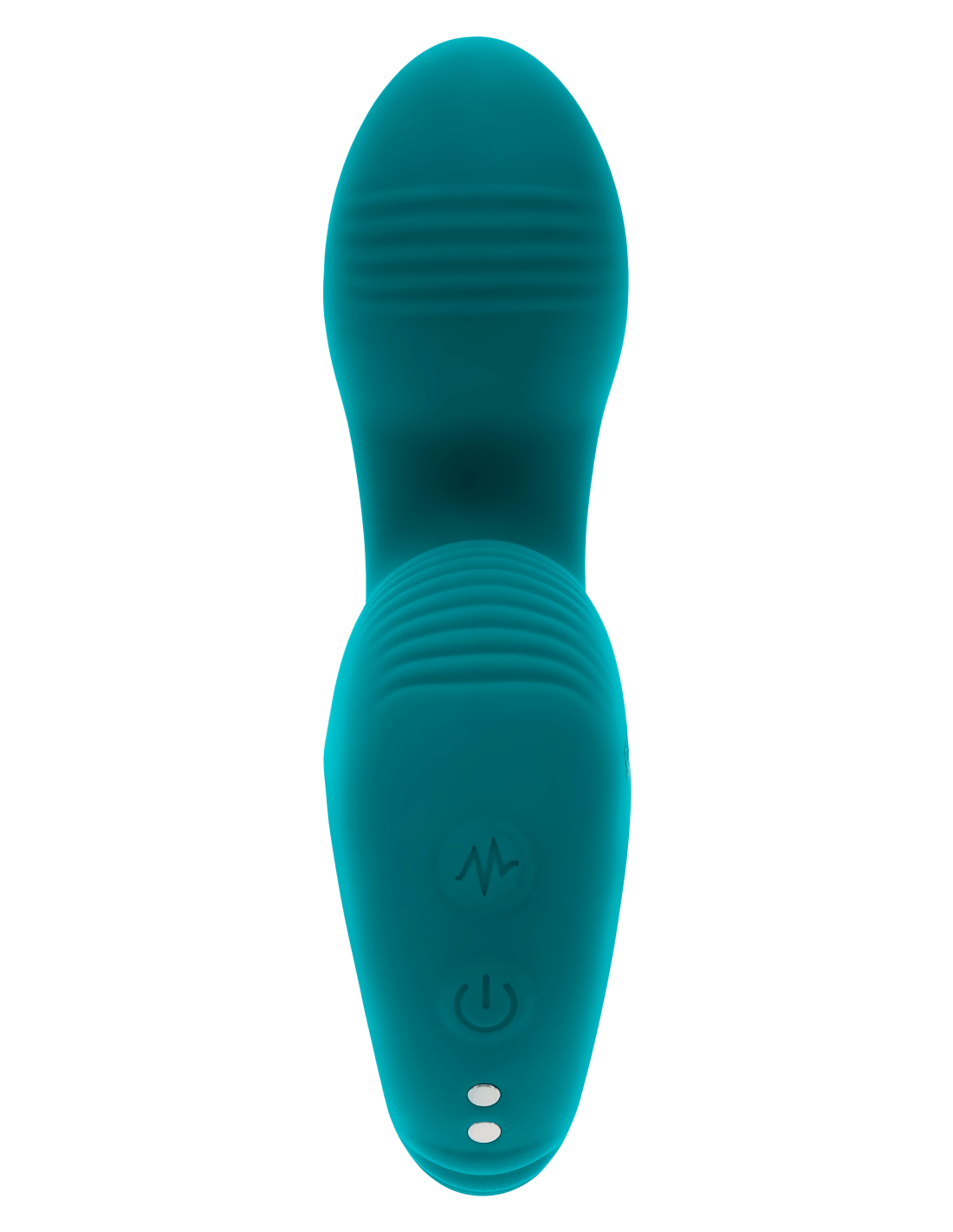 Pulgares arriba para este ambiente innovador que cuenta con dos motores controlados de forma independiente: uno en el shaft texturizado en forma de pulgar y otro en el mango ancho y anillado que también funciona como base de seguridad. Las vibraciones de varias velocidades impulsan el pulgar insertable que es flexible para moverse con el cuerpo, mientras que la base anillada zumba para una experiencia orgásmica combinada.