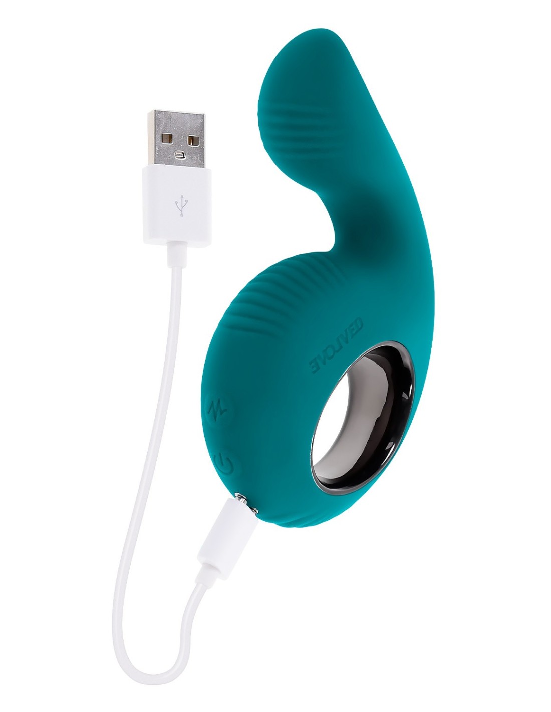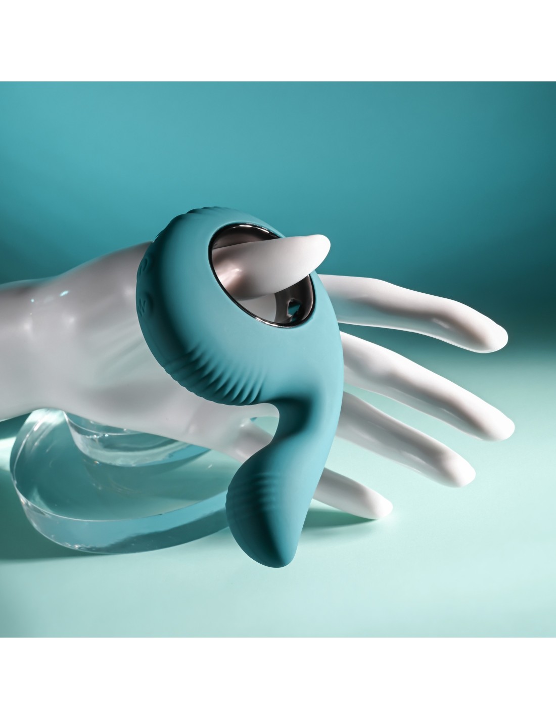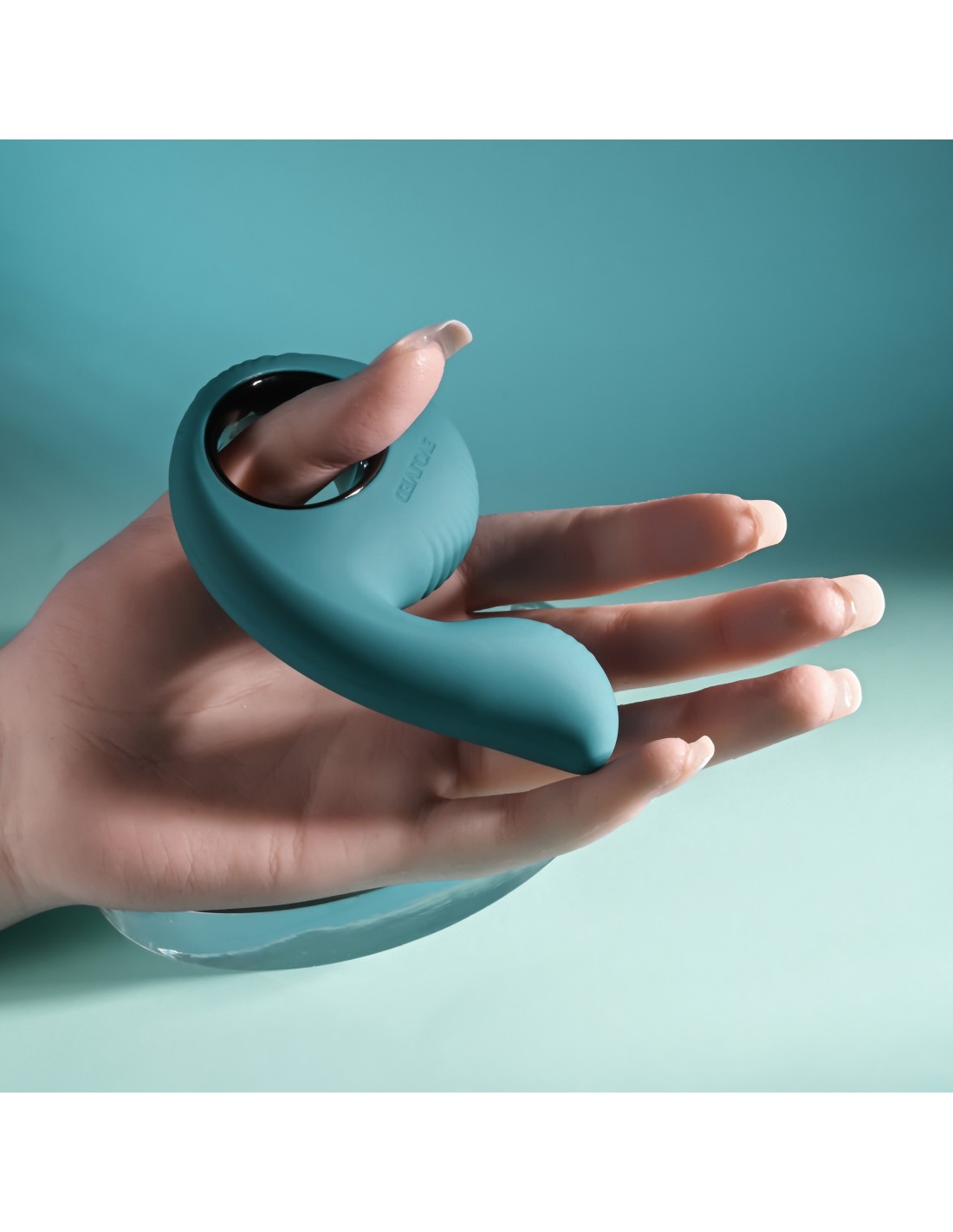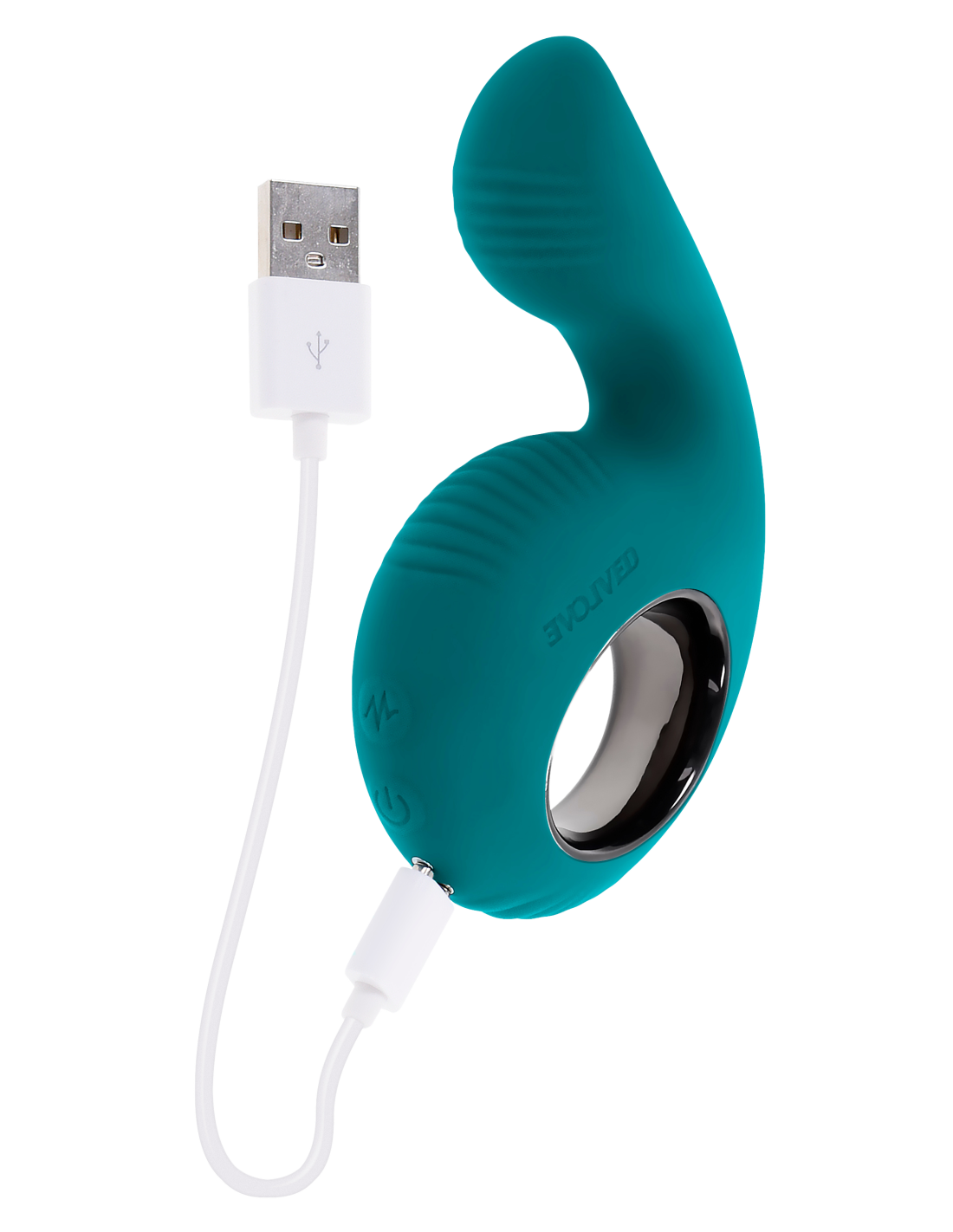 Pulgares arriba para este ambiente innovador que cuenta con dos motores controlados de forma independiente: uno en el shaft texturizado en forma de pulgar y otro en el mango ancho y anillado que también funciona como base de seguridad. Las vibraciones de varias velocidades impulsan el pulgar insertable que es flexible para moverse con el cuerpo, mientras que la base anillada zumba para una experiencia orgásmica combinada.