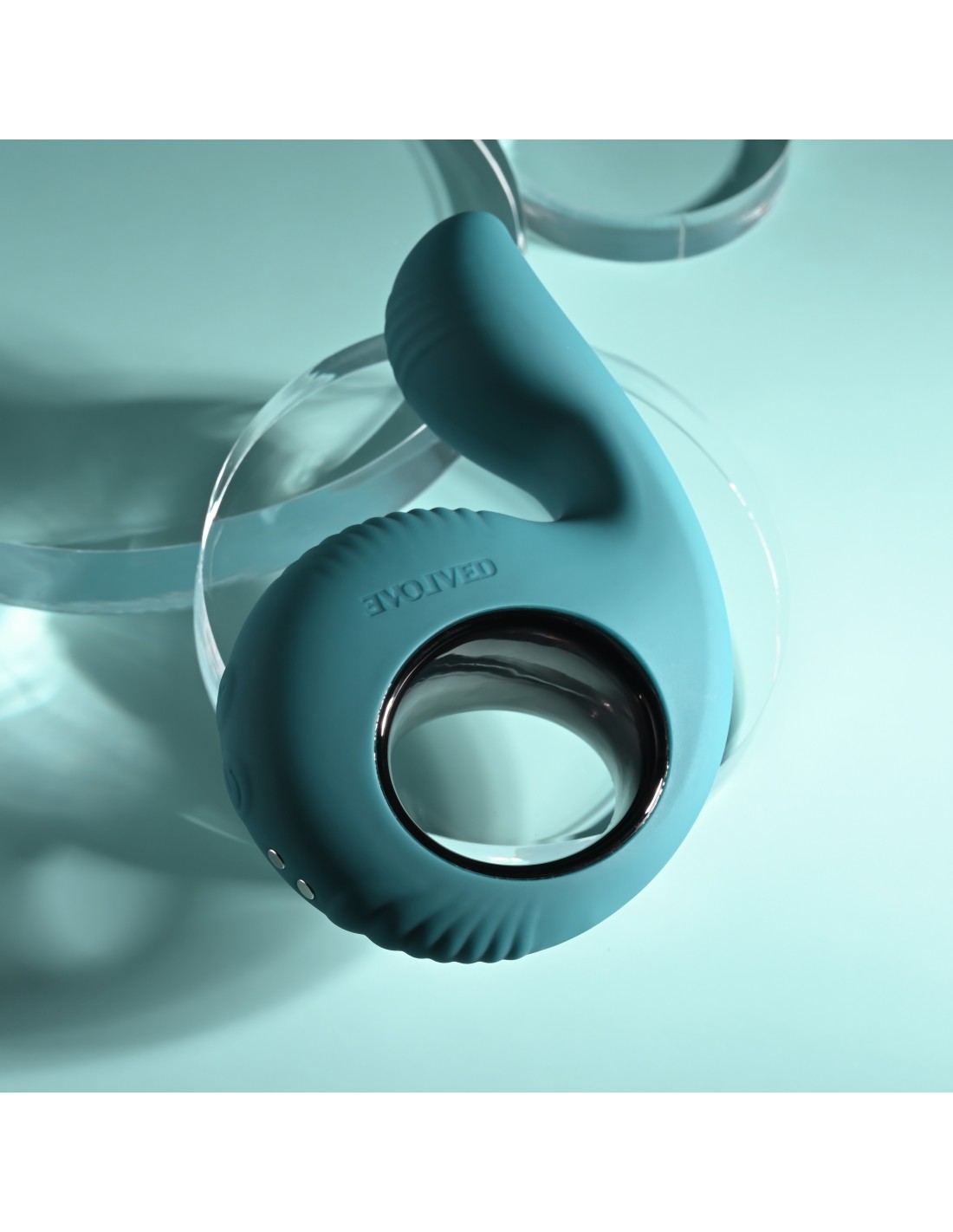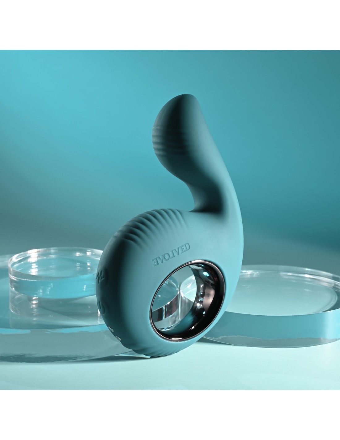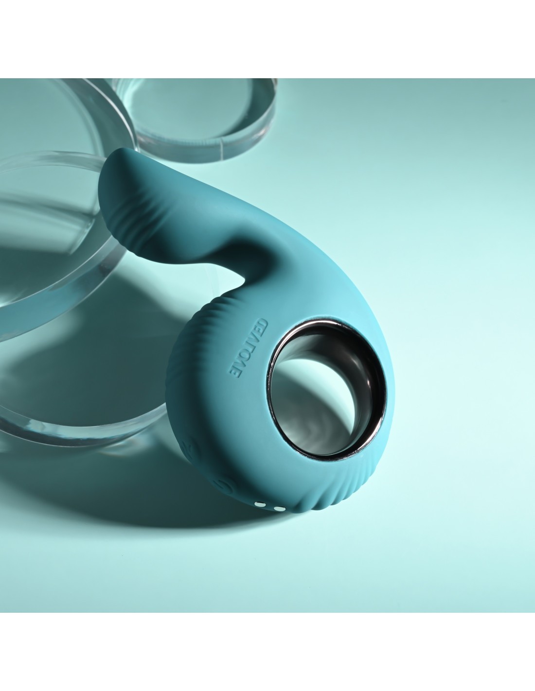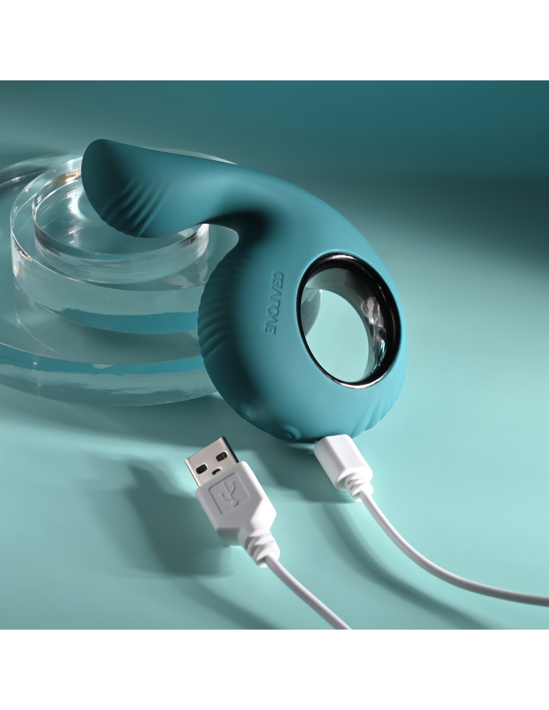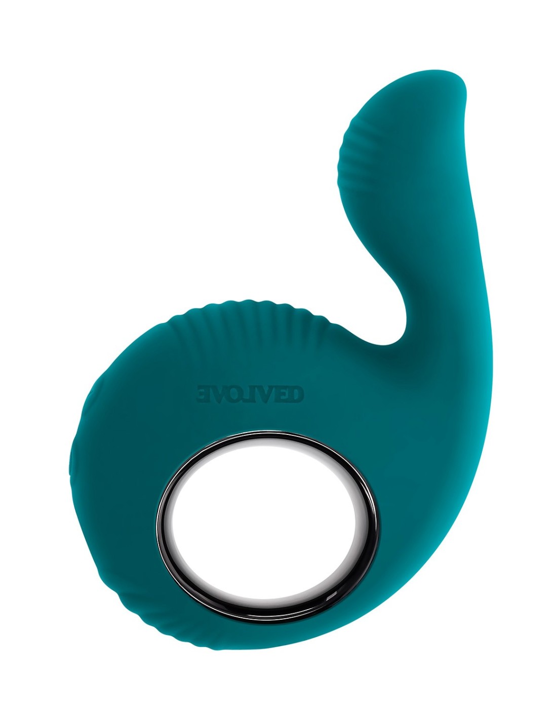 Pulgares arriba para este ambiente innovador que cuenta con dos motores controlados de forma independiente: uno en el shaft texturizado en forma de pulgar y otro en el mango ancho y anillado que también funciona como base de seguridad. Las vibraciones de varias velocidades impulsan el pulgar insertable que es flexible para moverse con el cuerpo, mientras que la base anillada zumba para una experiencia orgásmica combinada.