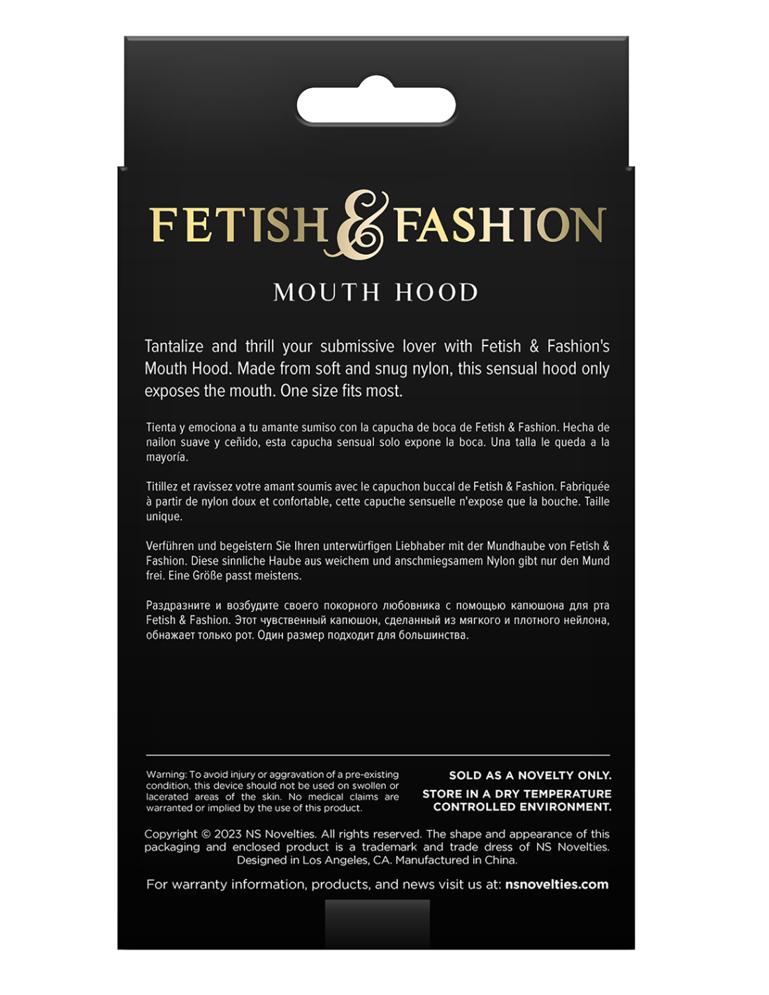 Tenta y emociona a tu sumisa amante con el Mouth Hood de Fetish & Fashion. Confeccionada en nailon suave y ceñido, esta sensual capucha solo deja al descubierto la boca. Talla única para la mayoría.