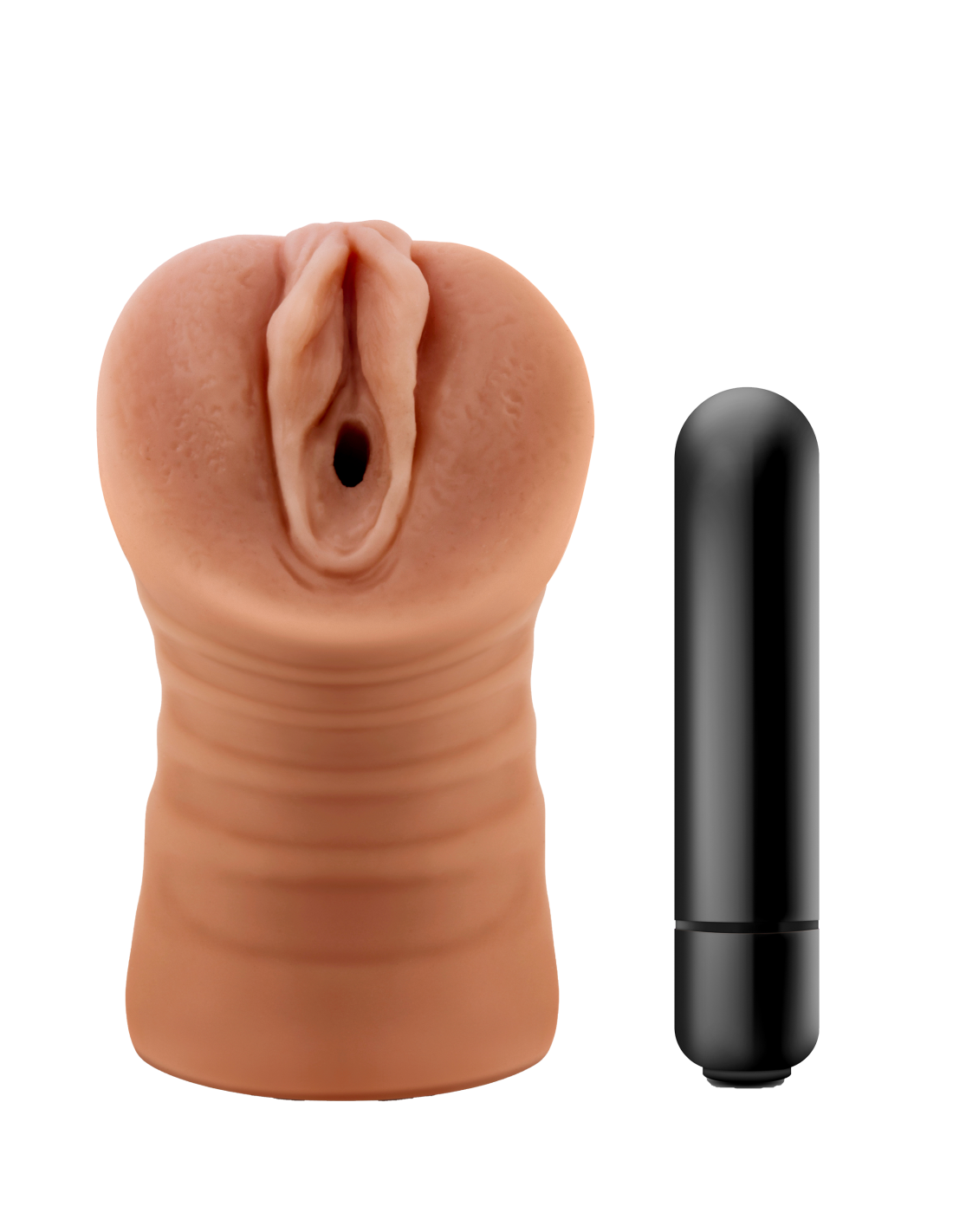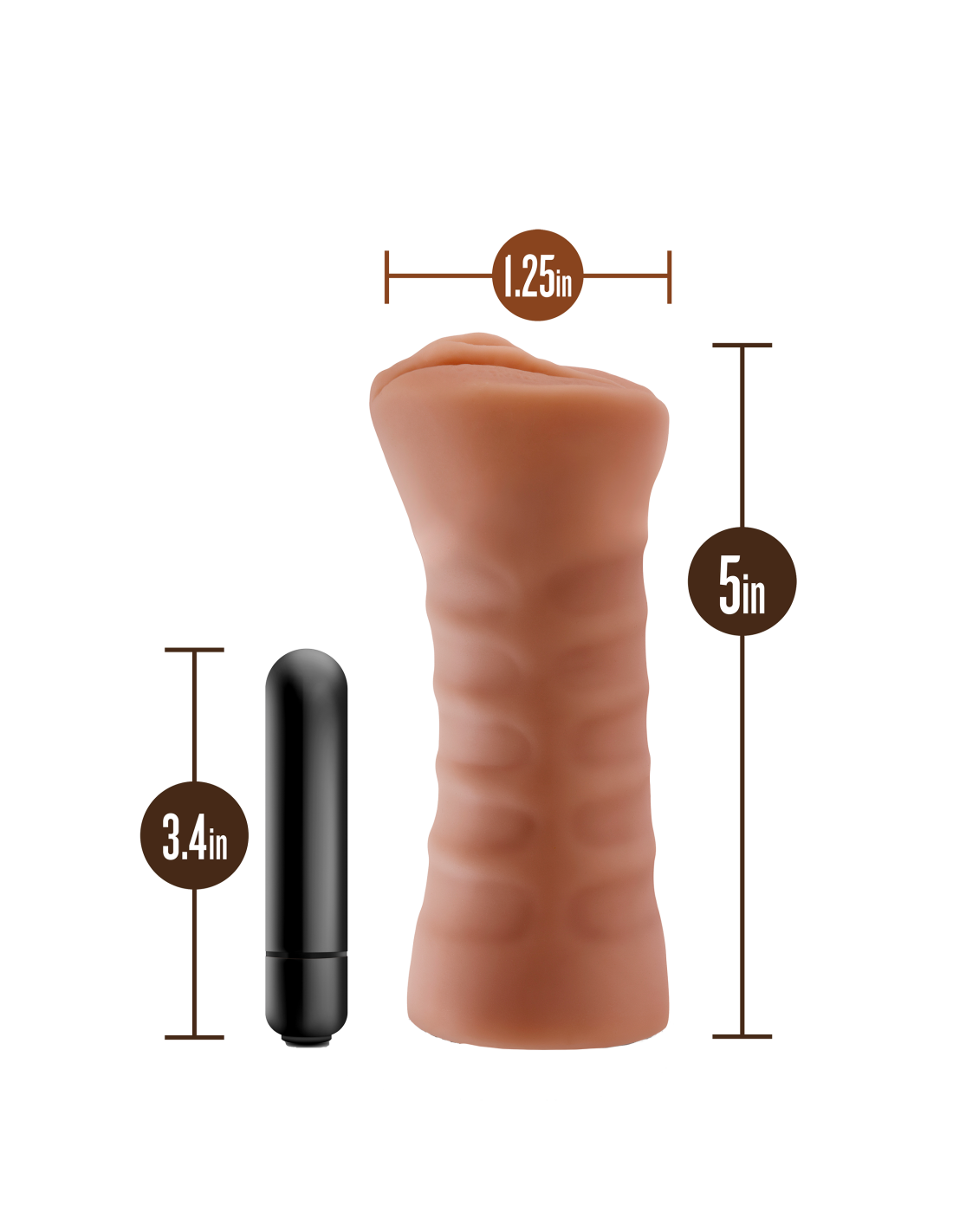 El M for Men Julieta es suave, flexible y está listo para llevarte en cualquier momento. Este acariciador realista es firme pero flexible y está lleno de texturas sensacionales. Viene con una bala vibratoria para mejorar la sensación al acariciar. Abierto y fácil de limpiar, Julieta se adapta a penes de cualquier tamaño. Hecho de TPE premium, es de alta calidad y seguro para el cuerpo. El vibrador tipo bala requiere 1 pila AAA (no incluida).