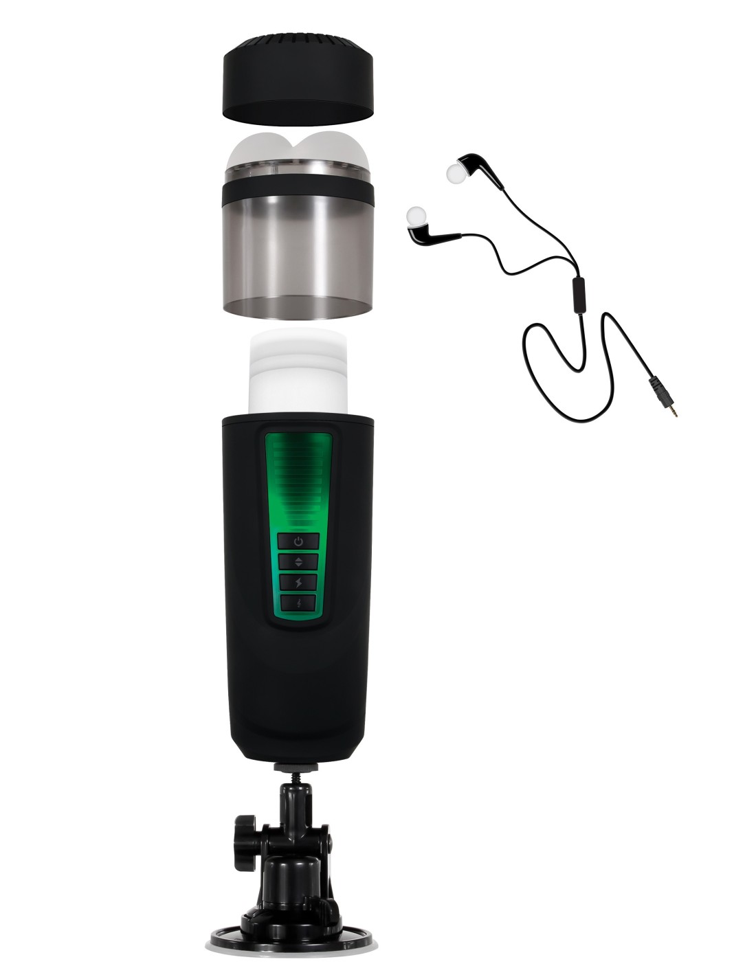 Prepárate para un viaje salvaje, ¡con una banda sonora sexy! Este acariciador superpoderoso, que empuja y gira es un tour de force erótico con su motor robusto y su impulso salvaje, y completa la fantasía con auriculares y pistas de voz que garantizan la excitación. Sujétese fuerte del recipiente duradero mientras navega por el panel de control de 4 botones, eligiendo entre 7 velocidades y funciones, ¡y el modo turbo para obtener una ráfaga de potencia a pedido! El canal interior texturizado y el soporte exterior apretado están hechos de caucho TPE suave y elástico que es transparente como el humo para ver la acción mientras juegas. ¡Cuidado, este poderoso acariciador parece tener vida propia!