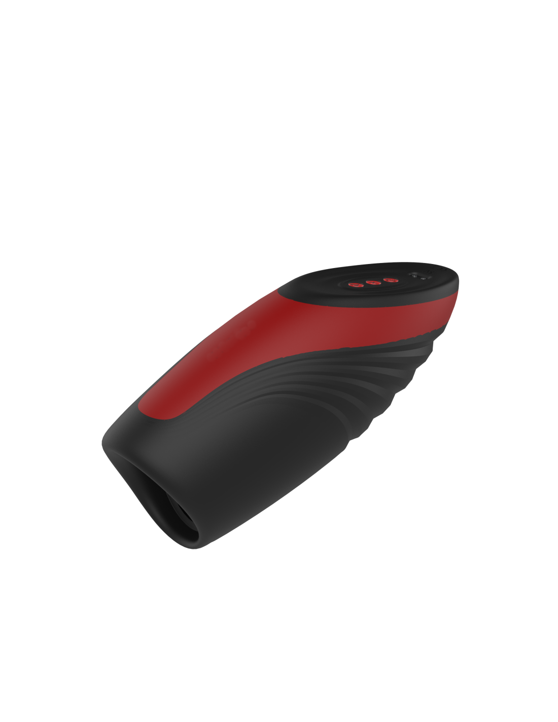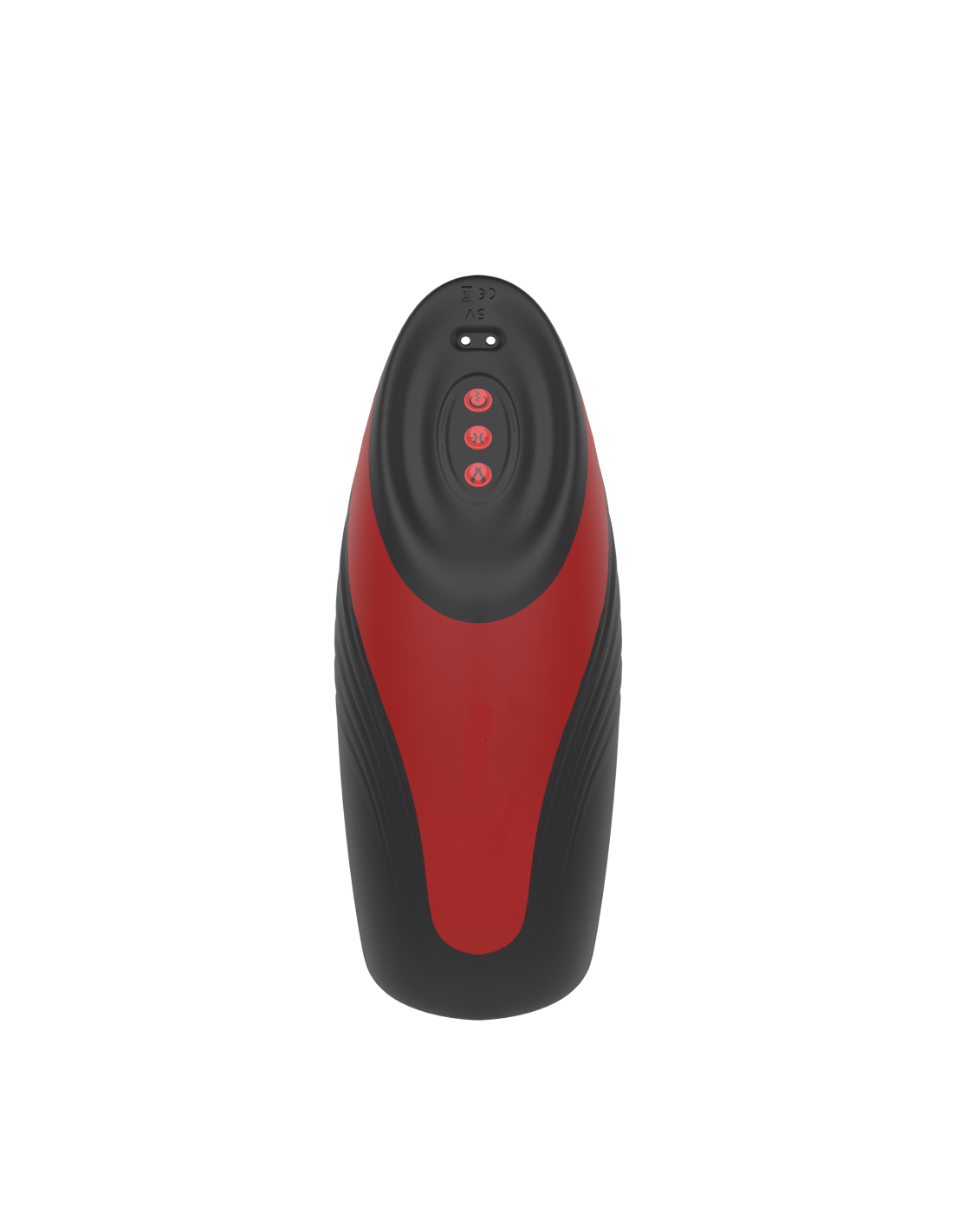 Funcionamiento: Mantenga presionado el botón superior para encender el masturbador. Presione brevemente el botón superior para iniciar/cambiar las vibraciones. Presione brevemente el botón central para iniciar/cambiar la succión. Pulsa el botón inferior para iniciar/detener la función de calentamiento.