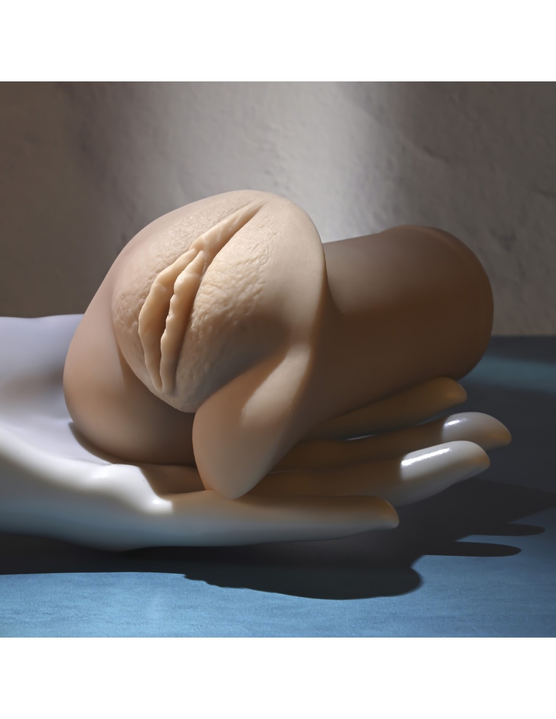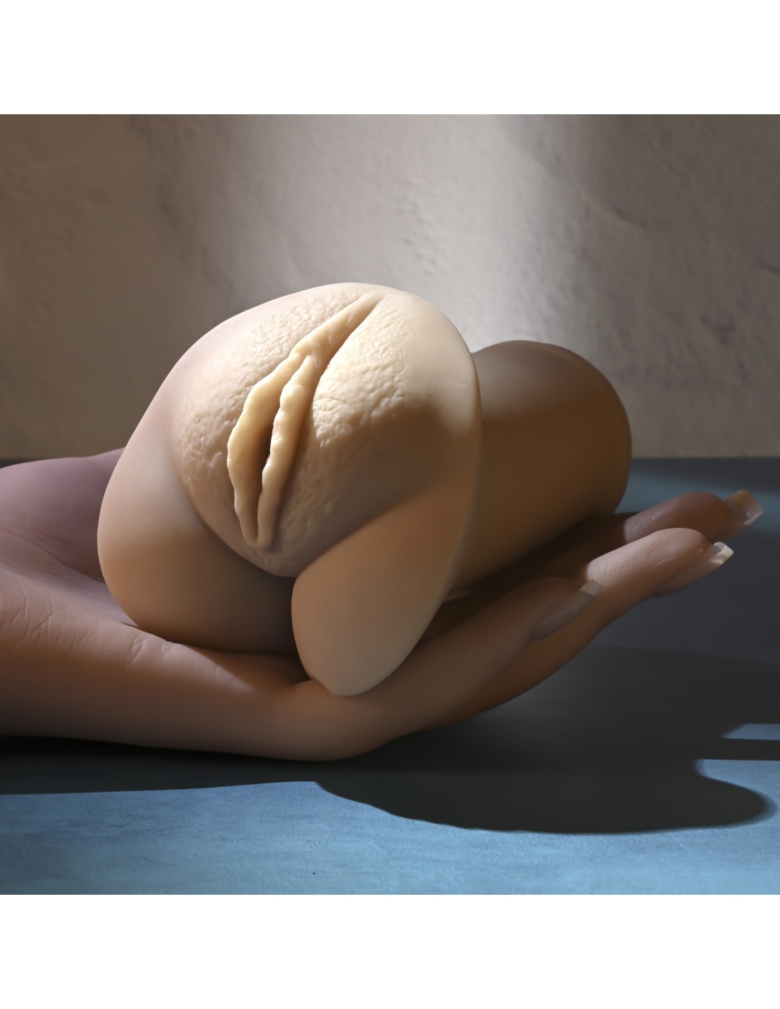 Disfruta de un placer suave y elástico en la palma de tu mano con este acariciador flexible y blando que presenta labios realistas y una entrada vaginal realista.