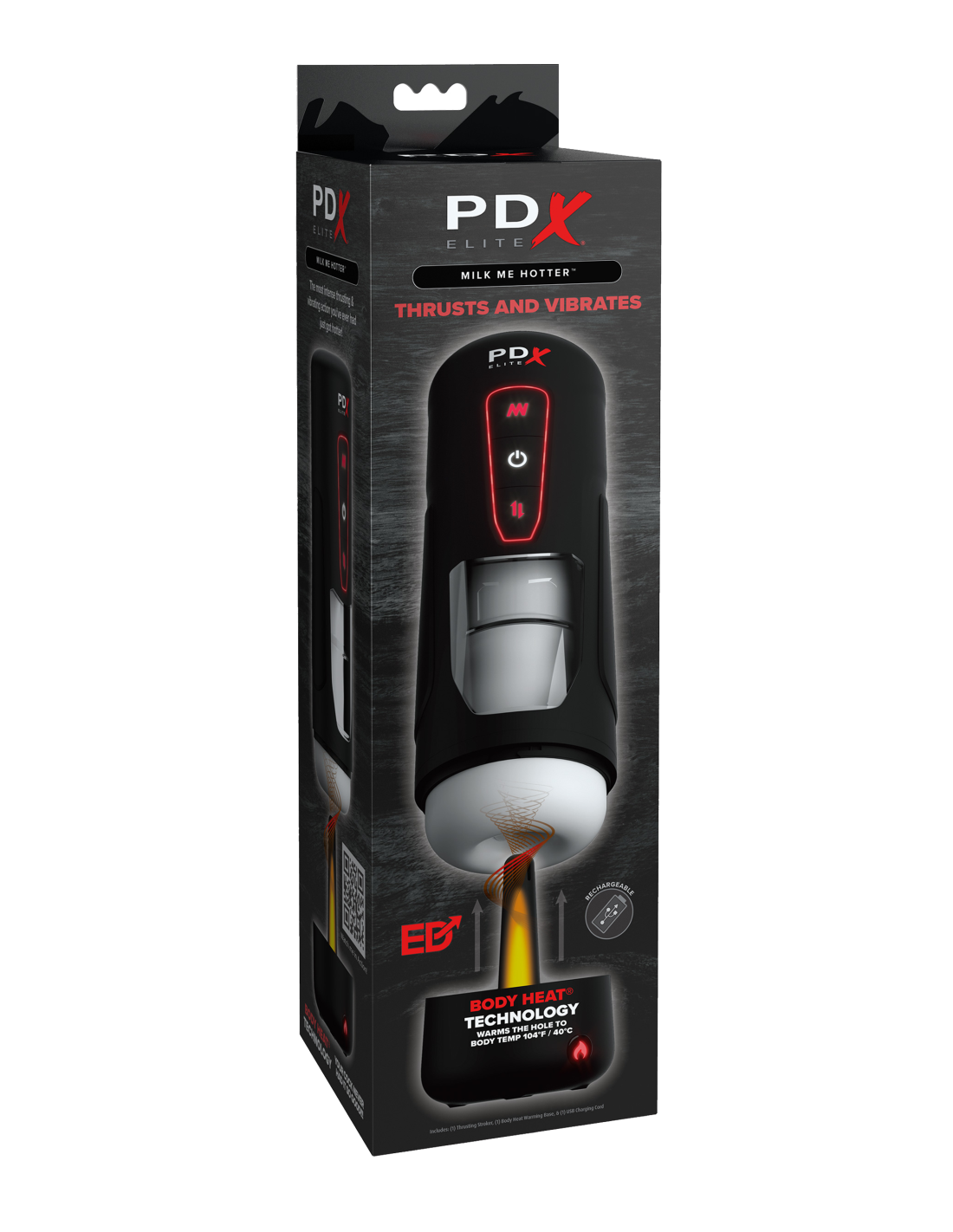 El PDX ELITE® Milk Me Hotter™ eleva la masturbación con un potente empuje intermitente para la máxima experiencia de acariciamiento. ¡Es una perfect tormenta de sensaciones para sesiones de sexo en solitario intensificadas que se pueden personalizar según tu estado de ánimo personal! ¡Prepárate para un empuje explosivo con manos libres, rodeando tu pene con una acción de caricias ultrasuave y automática! ¡Tu mejor experiencia de masturbación está lista cuando tú lo estés!