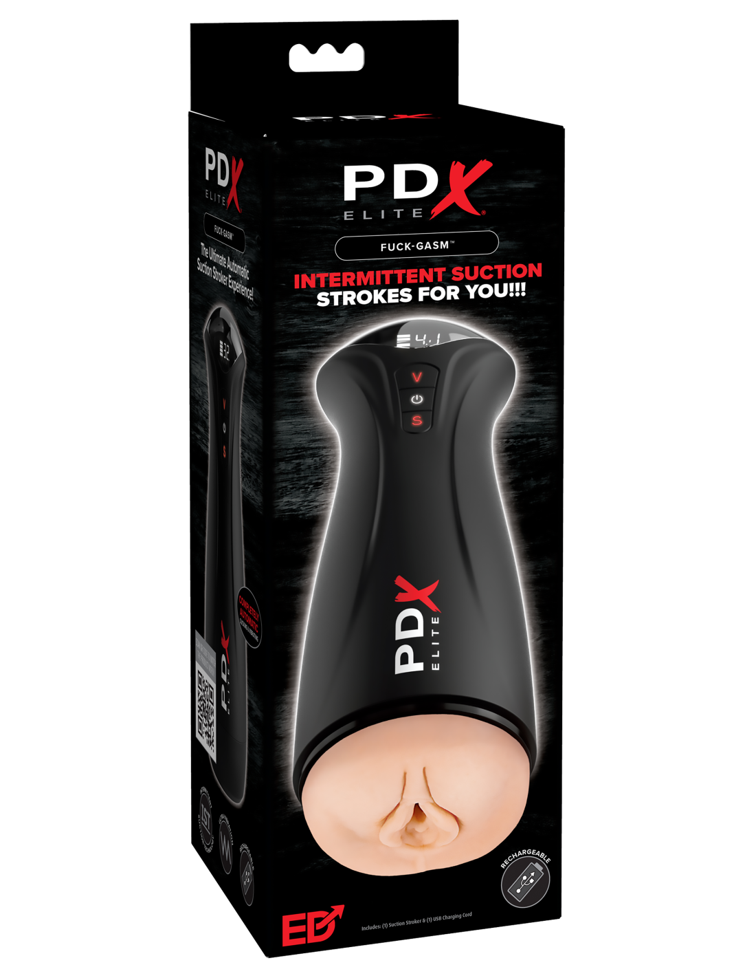 El PDX ELITE Fuck-Gasm eleva la masturbación con una potente succión y vibración intermitentes para la máxima experiencia de acariciamiento. ¡Es una perfect tormenta de sensaciones para sesiones de sexo en solitario intensificadas que se pueden personalizar según tu estado de ánimo personal! Prepárese para un placer explosivo de manos libres, ya que la tecnología de succión intermitente succiona automáticamente su pene hacia adentro y hacia afuera. Diseñadas para el máximo placer, las paredes texturizadas del funda ultrasuave no se parecen a nada que hayas sentido antes. ¡El Fuck-Gasm está listo cuando tú lo estés, y te dará los orgasmos más intensos que jamás hayas tenido!