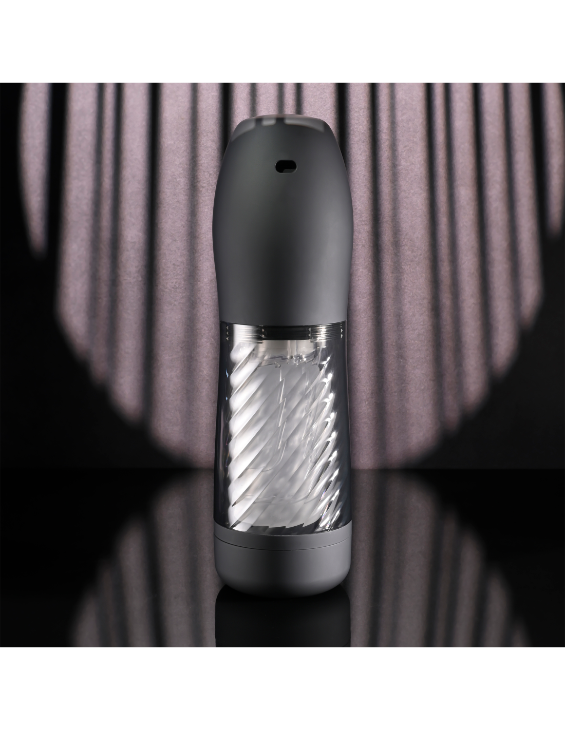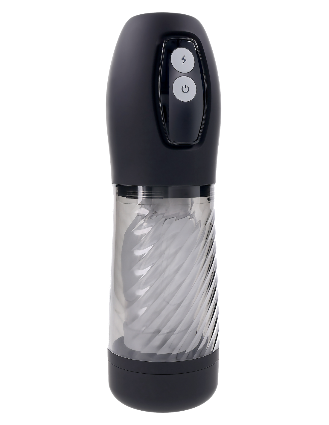 Te espera un torbellino de placer con este stroker giratorio y de empuje realista que te lleva a un viaje vertiginoso y emocionante. El canal interior realista, firme pero blando, está protuberado para una tentadora sensación de masaje, mientras que los motores se amplifican a través de 8 velocidades y ritmos, así como el modo turbo, que ofrece la máxima potencia cuando estás listo para el despegue. Una pantalla digital lo mantiene al día mientras su mano descansa cómodamente alrededor del recipiente con textura en espiral.