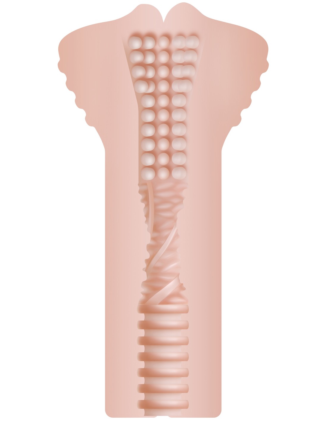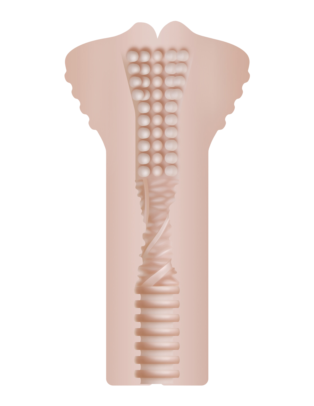 Junto con la tecnología Perfect Stroke, el stroker chupa y acaricia penes flácidos y erectos. Perfect para la disfunción eréctil, este acariciador ofrece orgasmos alucinantes mientras estás flácido o erecto. Los bucles de amor te sumergen profundamente en el estrecho canal. Entrada realista con labios suaves y carnosos. El bolsillo de hélice y las perlas de succión "tragan" y estimulan. Para usar con ZERO TOLERANCE Perfect botella Stroker, no incluida. Paquete de lubricante gratuito en el interior.