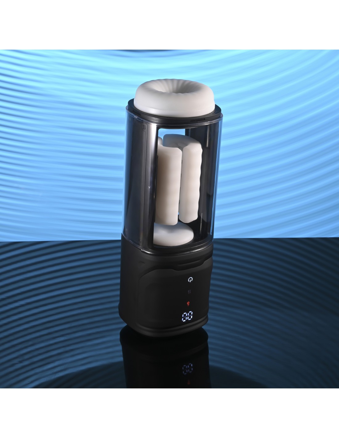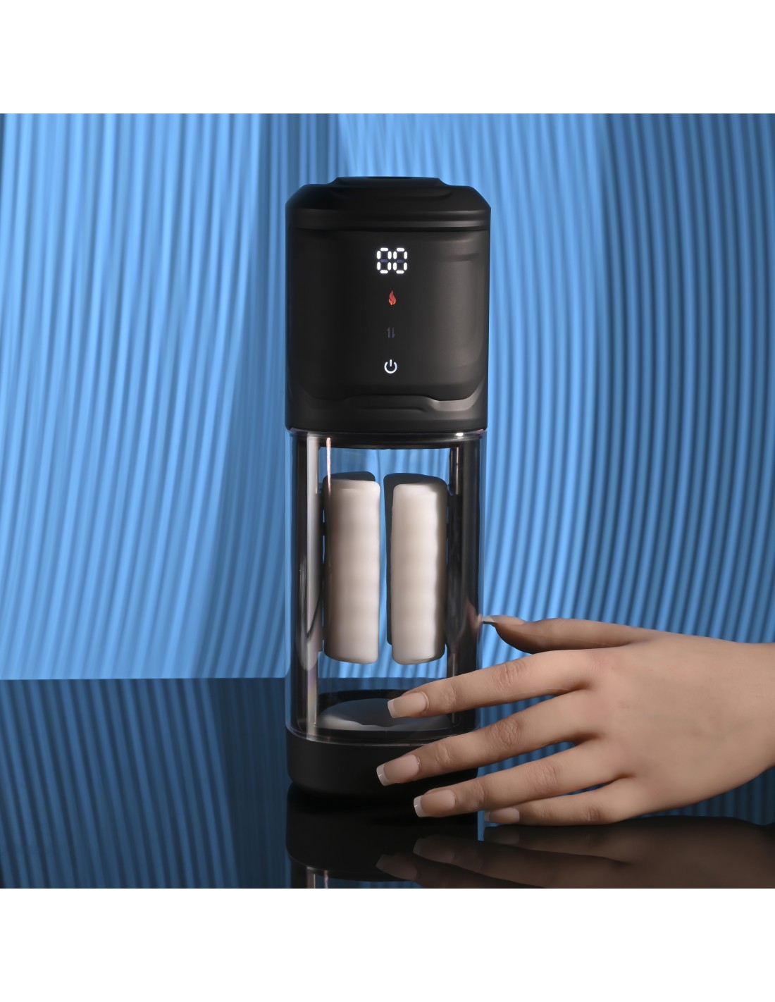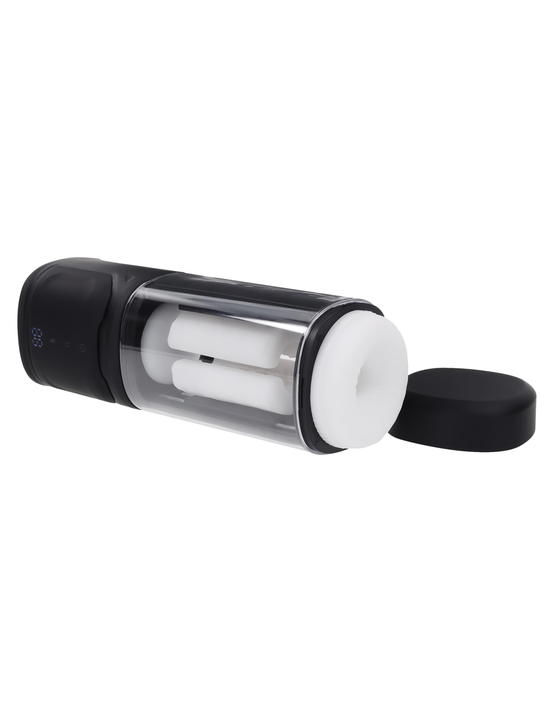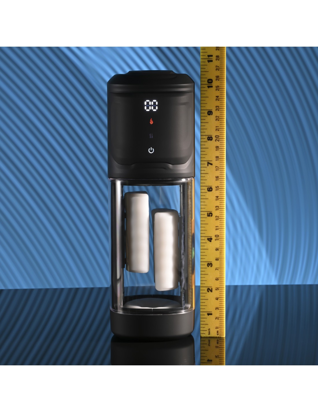 ¿Alguna vez has fantaseado con tener una pieza lateral? Ahora es tu oportunidad de cumplir la fantasía con este exclusivo stroker 'deslizante' que cuenta con dos almohadillas suaves y blandas que se deslizan hacia adelante y hacia atrás para una sensación deliciosamente realista. Pero eso no es todo: su pieza lateral también se calienta hasta dos niveles diferentes según su zona de confort cálida y vibra en 9 velocidades y ritmos diferentes para el máximo zumbido de placer. Use mucho de su lubricante favorito para deslizarse más allá de la entrada texturizada hacia el canal texturizado blando tibio (o caliente) y sienta el movimiento de lado a lado a su alrededor mientras el recipiente transparente y un tapón acolchado suave en el extremo le permiten saber cuándo ha empujado hasta el final. ¡Entonces deja que las vibraciones rítmicas de varias velocidades te pongan al límite! Una pantalla digital muestra qué funciones están en uso.