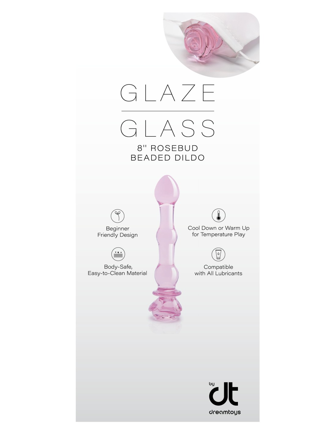 - Un lado con USP del artículo 22123 Colección Glaze Glass Consolador con cuentas Rosebud