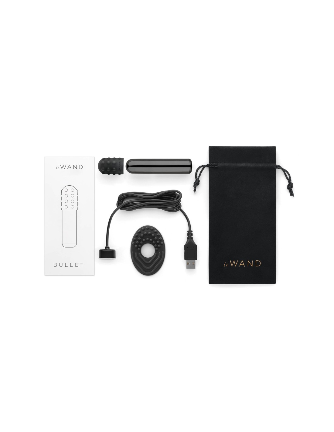 Le Wand Bullet, vibrador recargable con anillo texturizado de silicona. Perfecto para principiantes, LE WAND Bullet es un modelo lindo y divertido. Una pequeña vibración que es engañosa pero que tiene suficiente poder para llevarte al límite. Elegante y fácil de usar, Bullet tiene controles accesibles de un toque en la parte inferior de su marco redondeado y, al mismo tiempo, está completamente recubierto de metal seguro para el cuerpo. Este mini vibrador Bullet recargable viene con una funda de silicona texturizada extraíble para mayor placer. ¡Dicen que las cosas grandes vienen en paquetes pequeños!El juego completo incluye: