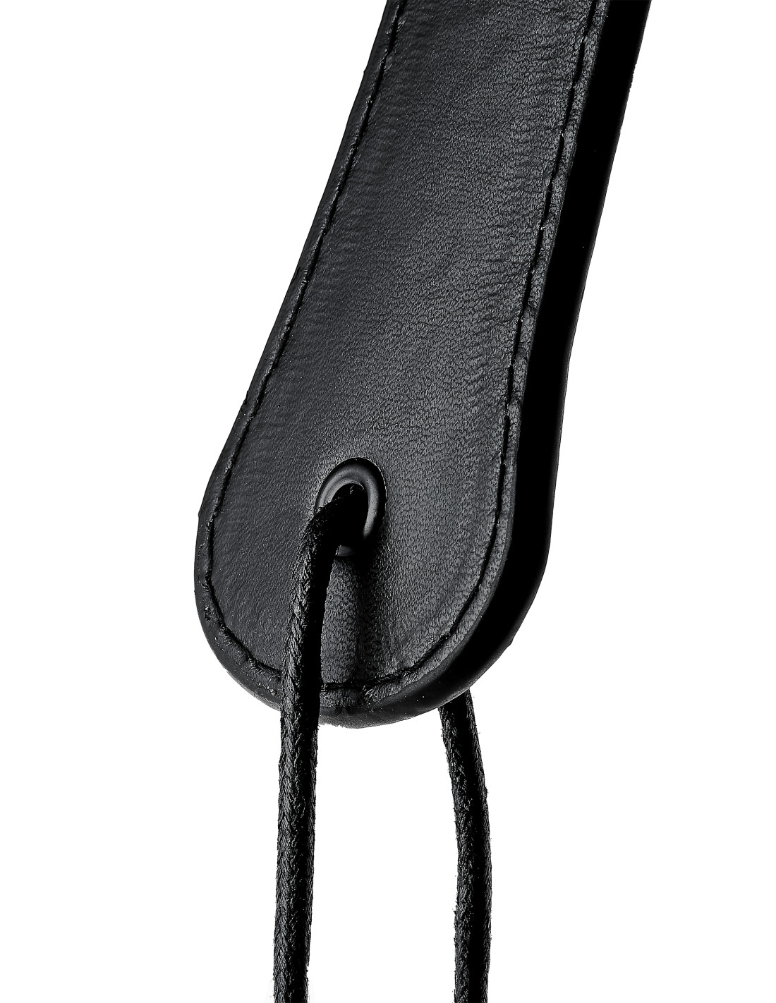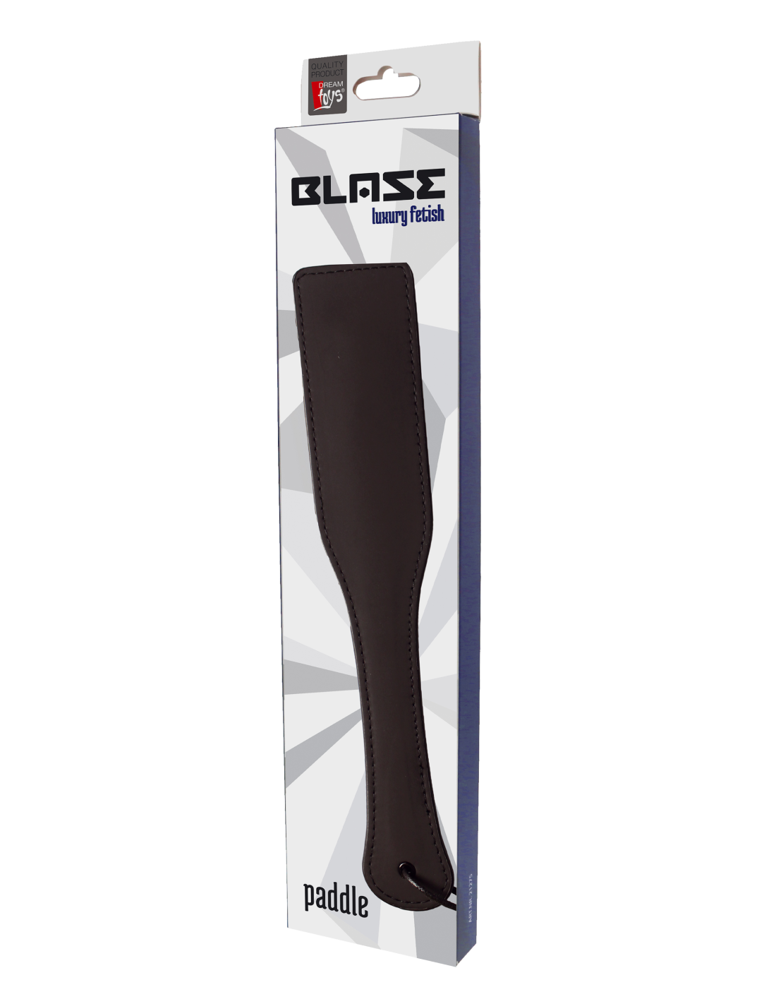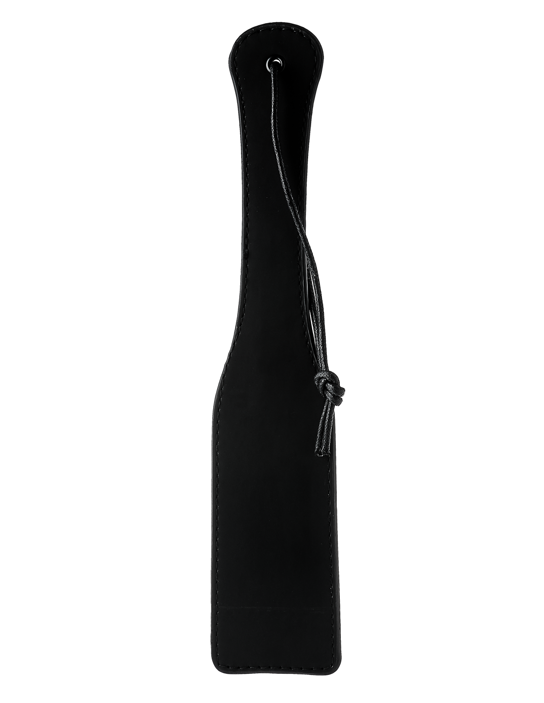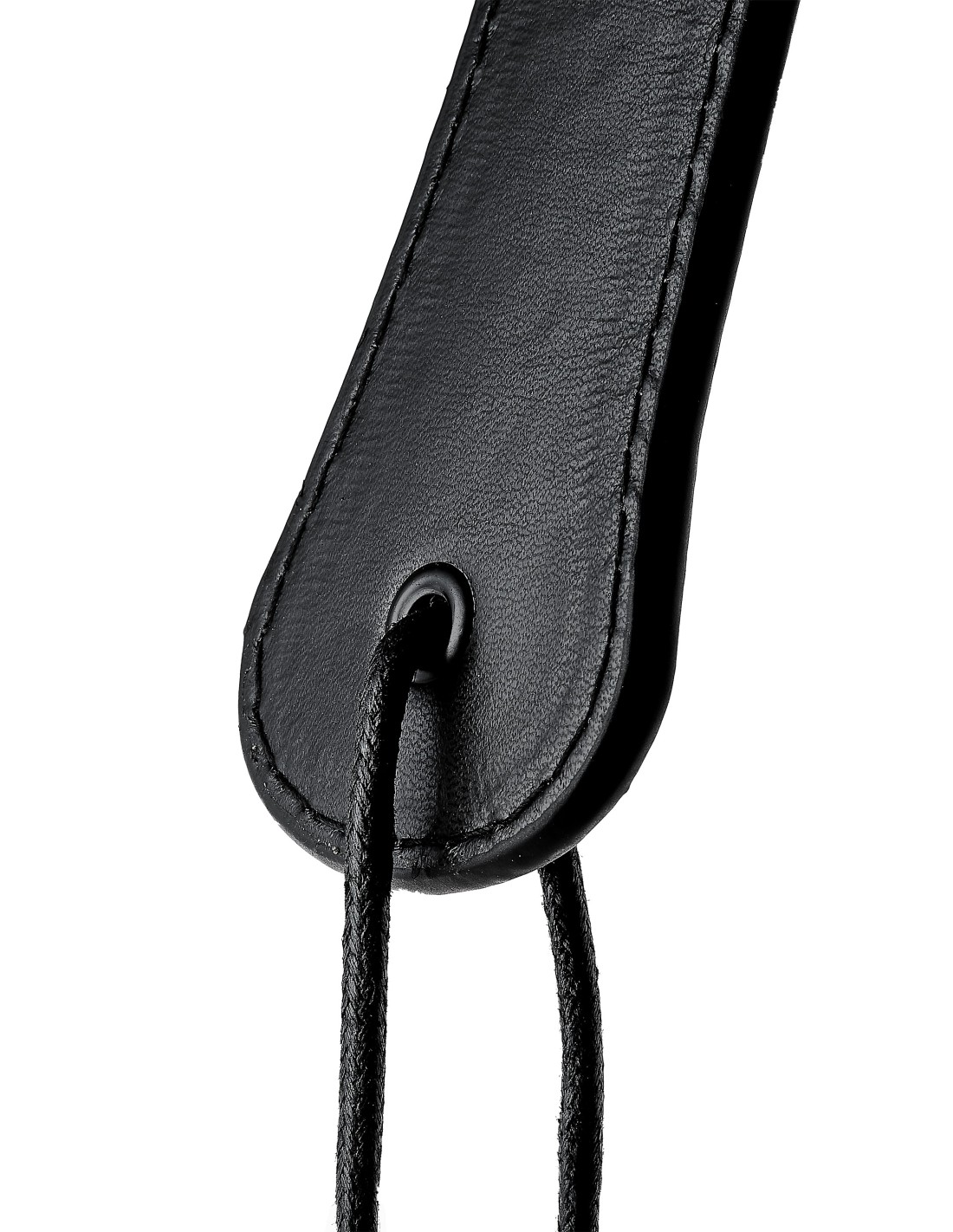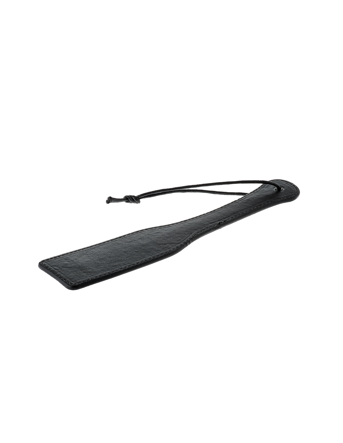 Esta paleta para jugar BDSM está hecha de material con apariencia de cuero negro en la parte delantera y una parte trasera lisa. Las diferentes texturas provocarán diferentes sensaciones. Tiene una cómoda correa para la muñeca. La paleta es ligeramente flexible para azotes suaves o firmes, úsela con cuidado.