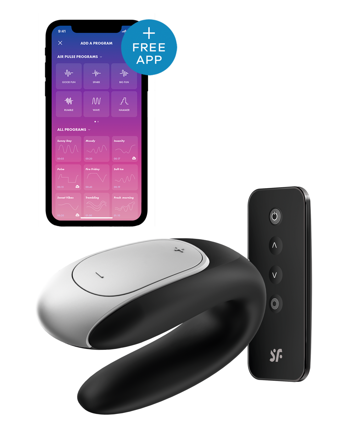Es El control también es intuitivo: los distintos programas de vibración se pueden controlar a través del panel de control del propio vibrador para parejas, mediante el mando a distancia inalámbrico incluido o mediante la aplicación Satisfyer Connect. Puedes descubrir aún más mejoras para hacer el amor con la aplicación: puedes crear tus propios programas de vibración, tomar el control del Satisfyer de tu pareja o vincular tu cuenta a Spotify y más. ¡Hay mucho por descubrir! La aplicación es gratuita y está disponible para Android, iOS y Apple Watch.