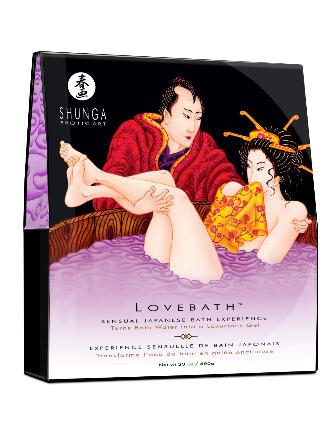 Love Bath, una sensual experiencia de baño japonés. El agua de tu baño se transformará en miles de delicadas perlas. Un perfume sutil llenará la habitación cuando entres en este oasis con tu amante. (No utilizar en bañeras motorizadas/baños tipo spa o jacuzzi).