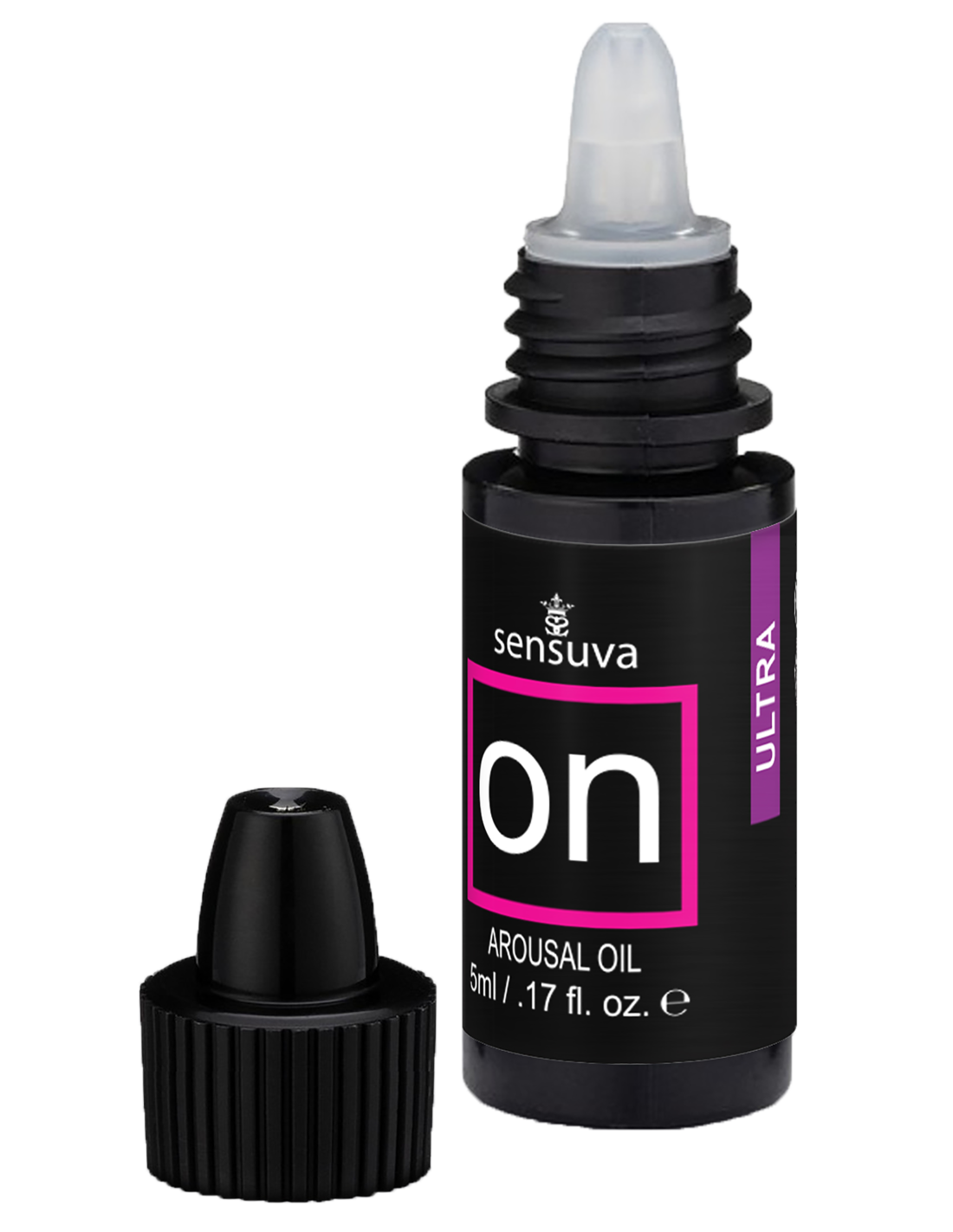 On™ Ultra Arousal Oil crea una sensación excitante que palpita y hace vibrar el clítoris. Sorprendentemente poderoso. Zumba de placer. On™ Ultra es un 25% más intenso que el ORIGINAL. On™ está hecho con una mezcla botánica natural de aceites esenciales para crear sensaciones de excitación natural y puede aumentar la autolubricación en la mayoría de los usuarios.