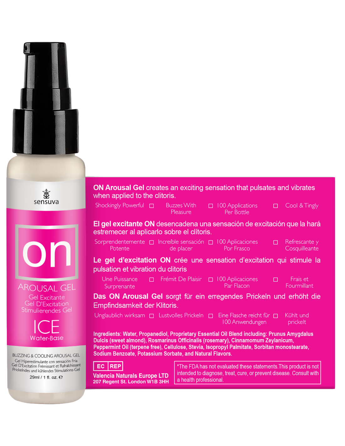 ON Ice Arousal Gel proporciona la misma sensación de vibración que sientes con ON Arousal Oil, ¡solo que en una fórmula fácil de usar, sin ensuciar y segura a base de agua! Con los mismos ingredientes únicos y naturales que se encuentran en los aceites ON Arousal, ON Arousal Gel crea una emocionante sensación refrescante que palpita y vibra cuando se aplica sobre el clítoris. ¡ON Arousal Gel incluso hace que la mayoría de las mujeres se sientan como si estuvieran lubricando MÁS!