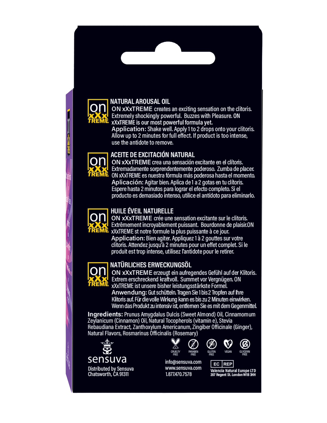 ON xXxTREME es la fórmula más impactante hasta la fecha. No es para principiantes. Viene con 2 botellas separadas, un antídoto y un aceite de excitación.