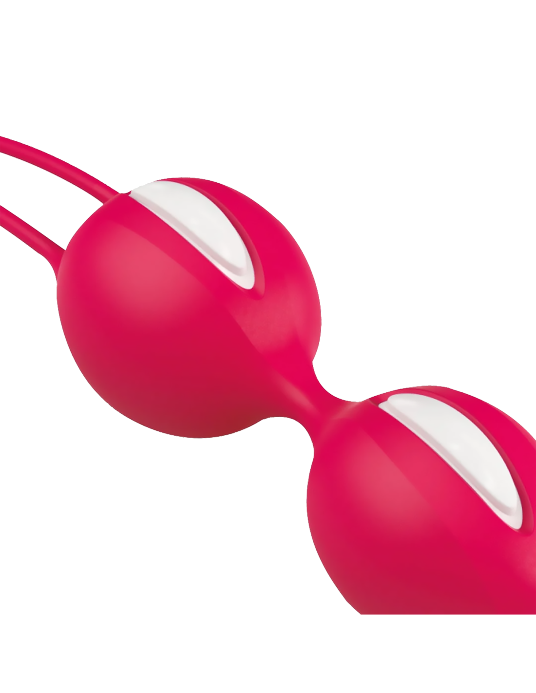 Lubrica estas bolas lisas de silicona, insértalas y usa tus músculos para sostenerlas dentro de tu vagina. A partir de ahí, puedes hacer ejercicios de apretar y soltar o simplemente seguir con tu vida. Cada pelota contiene un peso pequeño y redondo que rebota y rueda a medida que te mueves, lo que hace que tus músculos trabajen más para mantener las SMARTBALLS sin que tengas que hacer un esfuerzo consciente.