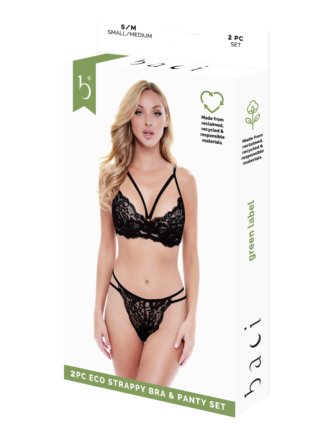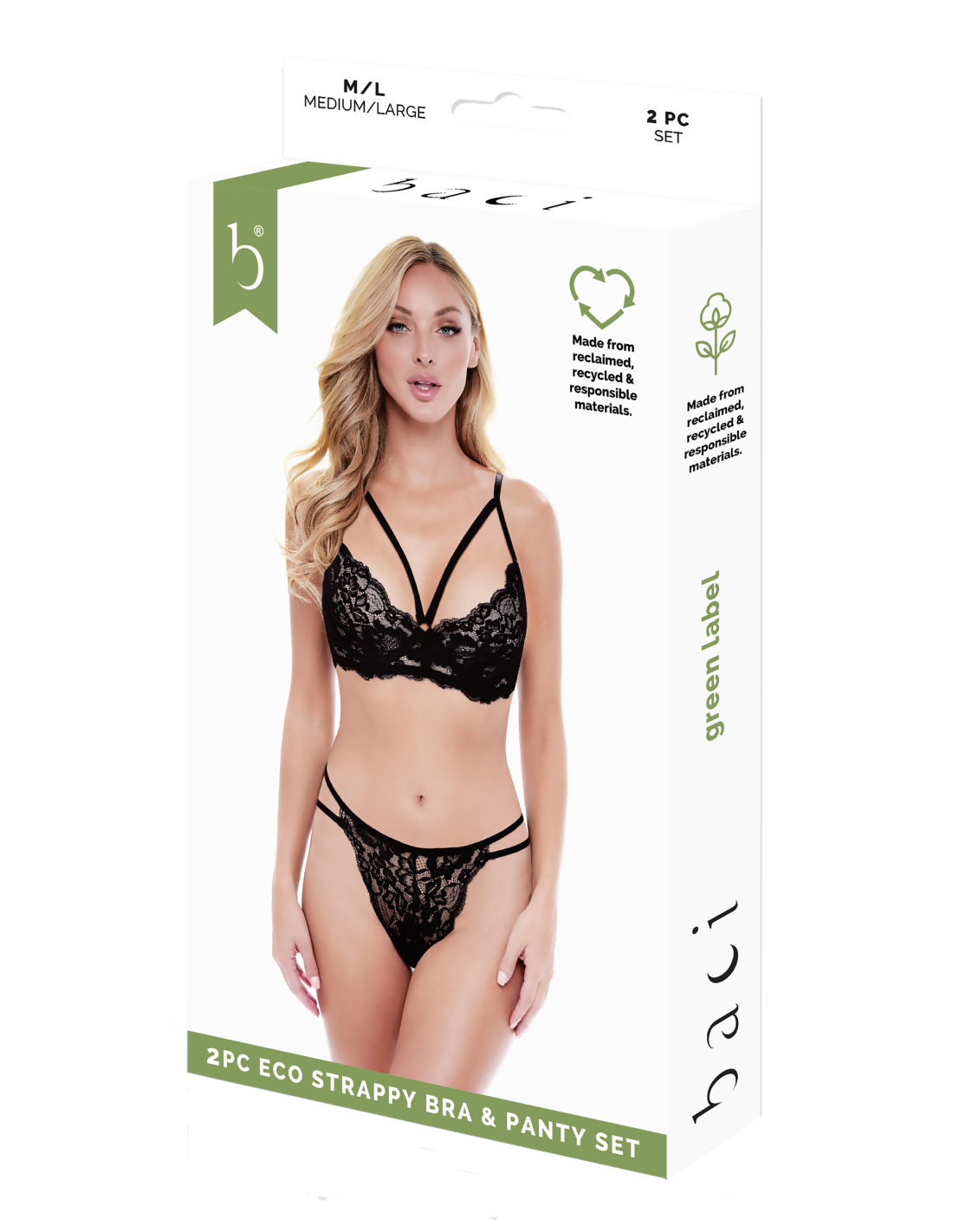 BACI 2 UDS. CONJUNTO DE SUJETADOR Y BRAGAS DE TIRAS ECOLÓGICAS NEGRO
