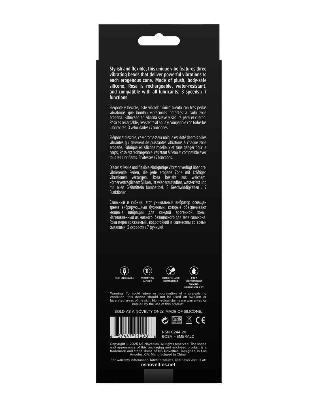 Elegante y flexible, este ambiente único presenta tres perlas vibratorias que brindan poderosas vibraciones a cada zona erógena. Hecho de silicona suave y segura para el cuerpo, Rosa es recargable, resistente al agua y compatible con todos los lubricantes.