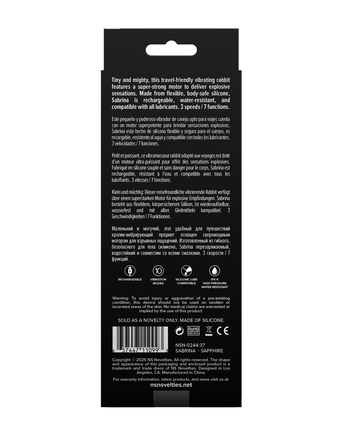 Pequeño y poderoso, este conejo vibrador apto para viajes cuenta con un motor súper fuerte para brindar sensaciones explosivas. Hecho de silicona flexible y segura para el cuerpo, Sabrina es recargable, resistente al agua y compatible con todos los lubricantes.