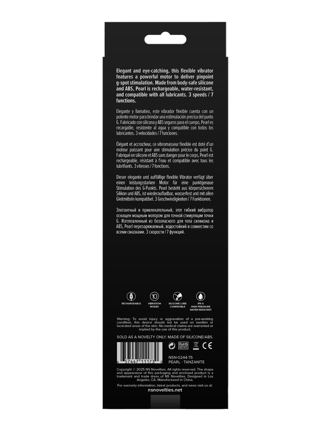 Elegante y llamativo, este vibrador flexible cuenta con un potente motor para proporcionar una estimulación precisa del punto G. Hecho de silicona y ABS seguros para el cuerpo, Pearl es recargable, resistente al agua y compatible con todos los lubricantes.