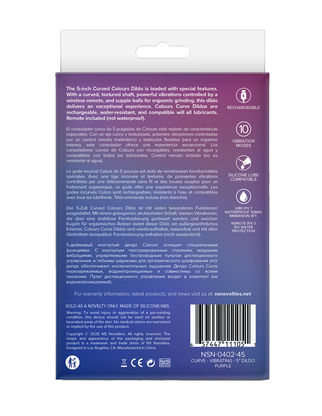 El consolador de colores curvos de 5 pulgadas está cargado de características especiales. Con una shaft curva y texturizada, potentes vibraciones controladas por un mando a distancia inalámbrico y bolas flexibles para un molienda orgásmica, este consolador ofrece una experiencia excepcional. Los consoladores Colours Curve son recargables, resistentes al agua y compatibles con todos los lubricantes. Control remoto incluido (no resistente al agua).