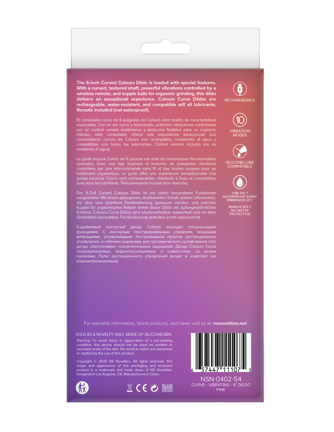 El consolador de colores curvos de 6 pulgadas está cargado de características especiales. Con una shaft curva y texturizada, potentes vibraciones controladas por un mando a distancia inalámbrico y bolas flexibles para un molienda orgásmica, este consolador ofrece una experiencia excepcional. Los consoladores Colours Curve son recargables, resistentes al agua y compatibles con todos los lubricantes. Control remoto incluido (no resistente al agua).