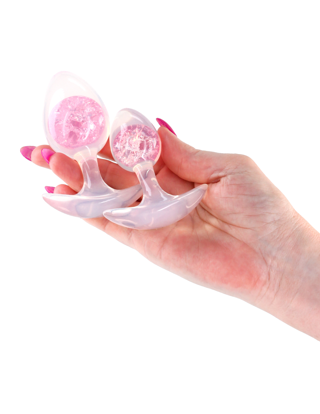 Despega hacia el placer con Cosmic Glams. Hecho de silicona líquida segura para el cuerpo, cada enchufe presenta una canica de vidrio interna brillante y vívida en una variedad de colores de luz de estrellas. Disponible en tamaños individuales y adecuado con todos los lubricantes. También disponible como kit de entrenamiento de 2 piezas.
