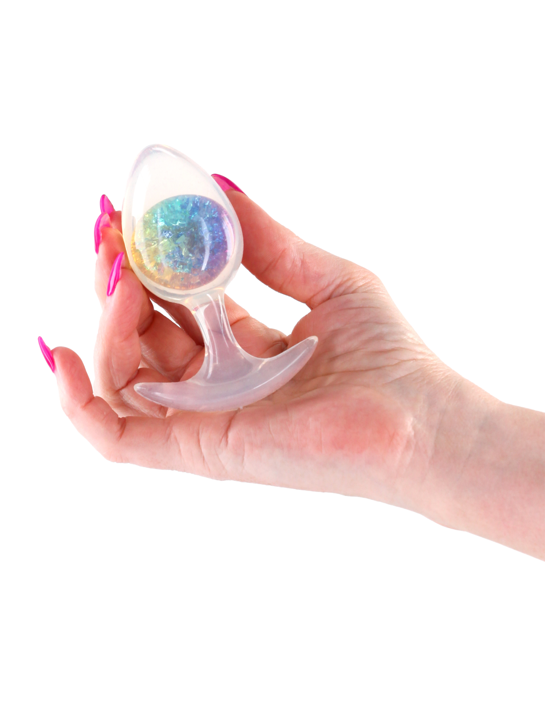Despega hacia el placer con Cosmic Glams. Hecho de silicona líquida segura para el cuerpo, cada enchufe presenta una canica de vidrio interna brillante y vívida en una variedad de colores de luz de estrellas. Disponible en tamaños individuales y adecuado con todos los lubricantes. También disponible como kit de entrenamiento de 2 piezas.