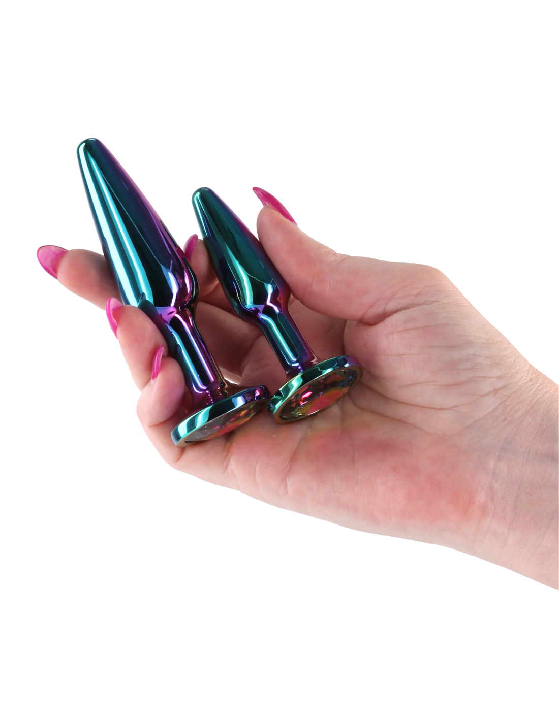 Juguetes anales ligeros y cromados diseñados para la excitación visual y sensual. Hechos de aluminio liviano y con forma para una penetración sin esfuerzo, estos juguetes anales seguros para el cuerpo están disponibles en una variedad de colores, formas y tamaños. Adecuado con todos los lubricantes.