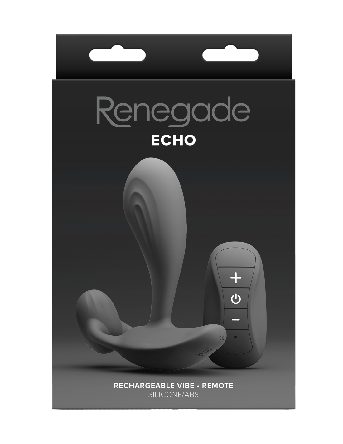 Echo by Renegade : un masajeador elegante e insertable diseñado para estimular la próstata y contaminar con vibraciones vigorosas. Con un diseño progresivo, Echo está hecho de silicona ricamente flexible para una experiencia cómoda durante sesiones prolongadas. Juega solo o con un compañero usando el control remoto incluido. Recargable. Resistente al agua. Adecuado con todos los lubricantes. (Batería AAA para control remoto no incluida.)