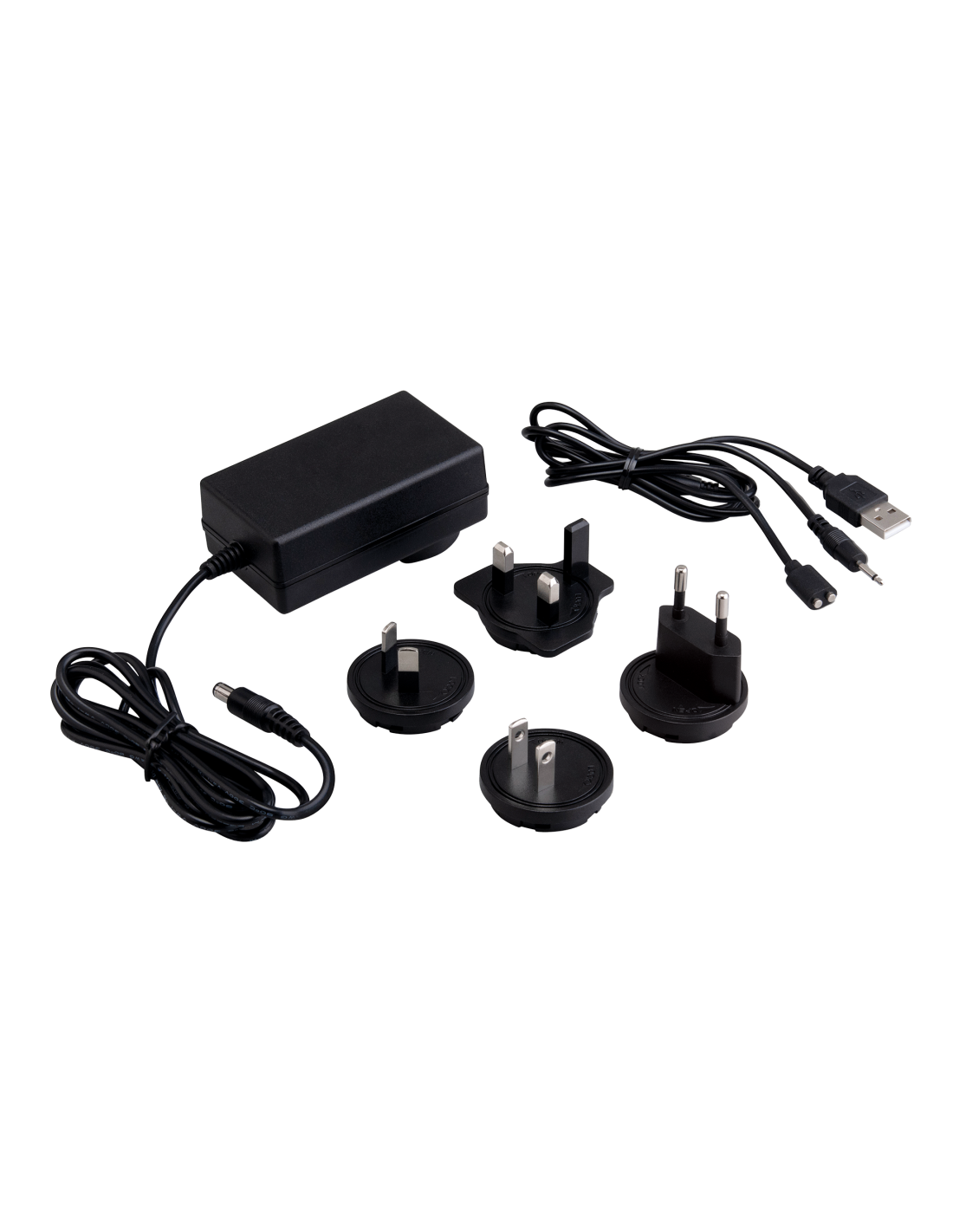 - Adaptador de corriente (EE. UU., REINO UNIDO, UE y AUS)