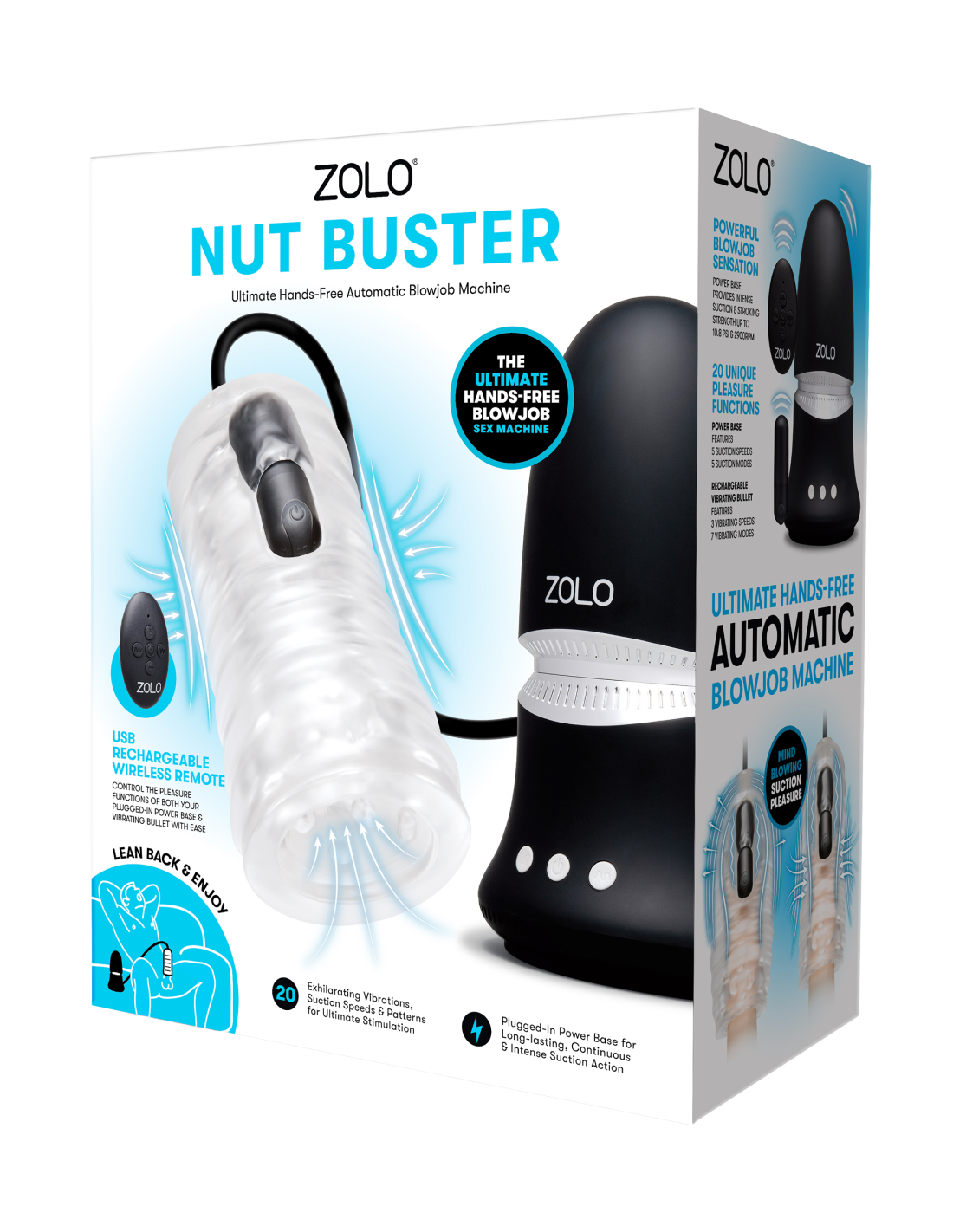 Presentamos la Nut Buster de ZOLO: la máquina de mamadas automática manos libres definitiva. Disfruta de una potente succión, caricias y vibraciones con 20 funciones únicas, un funda texturizado para un mayor placer y un control remoto inalámbrico para un fácil control. ¡Experimenta sensaciones alucinantes como nunca antes! El Nut Buster cuenta con 20 funciones de placer únicas; 5 velocidades de succión, 5 modos de succión, 3 velocidades de vibración y 7 modos de vibración. La Power Base proporciona una intensa succión y fuerza de carrera de hasta 10.8 PSI y 2900 RPM. El Nut Buster incluye un cable de carga USB a magnético y de pin, adaptador de corriente (adaptadores de EE. UU., Reino Unido, UE y Australia), extensor de manguera, funda texturizado, bala vibradora recargable y control remoto inalámbrico recargable por USB.