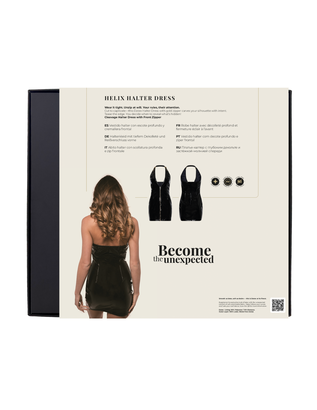 Ya sea diseñado para impactar o usado para excitar, el vestido halter Helix es una declaración deliberada: elegante, provocativo e infinitamente magnético.