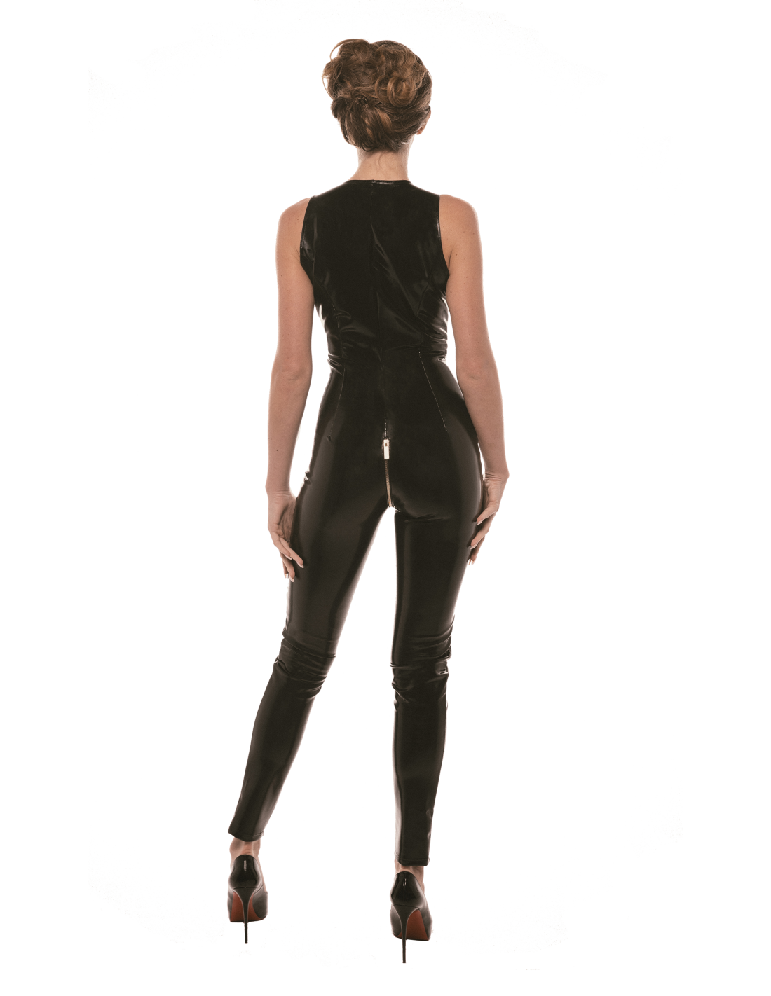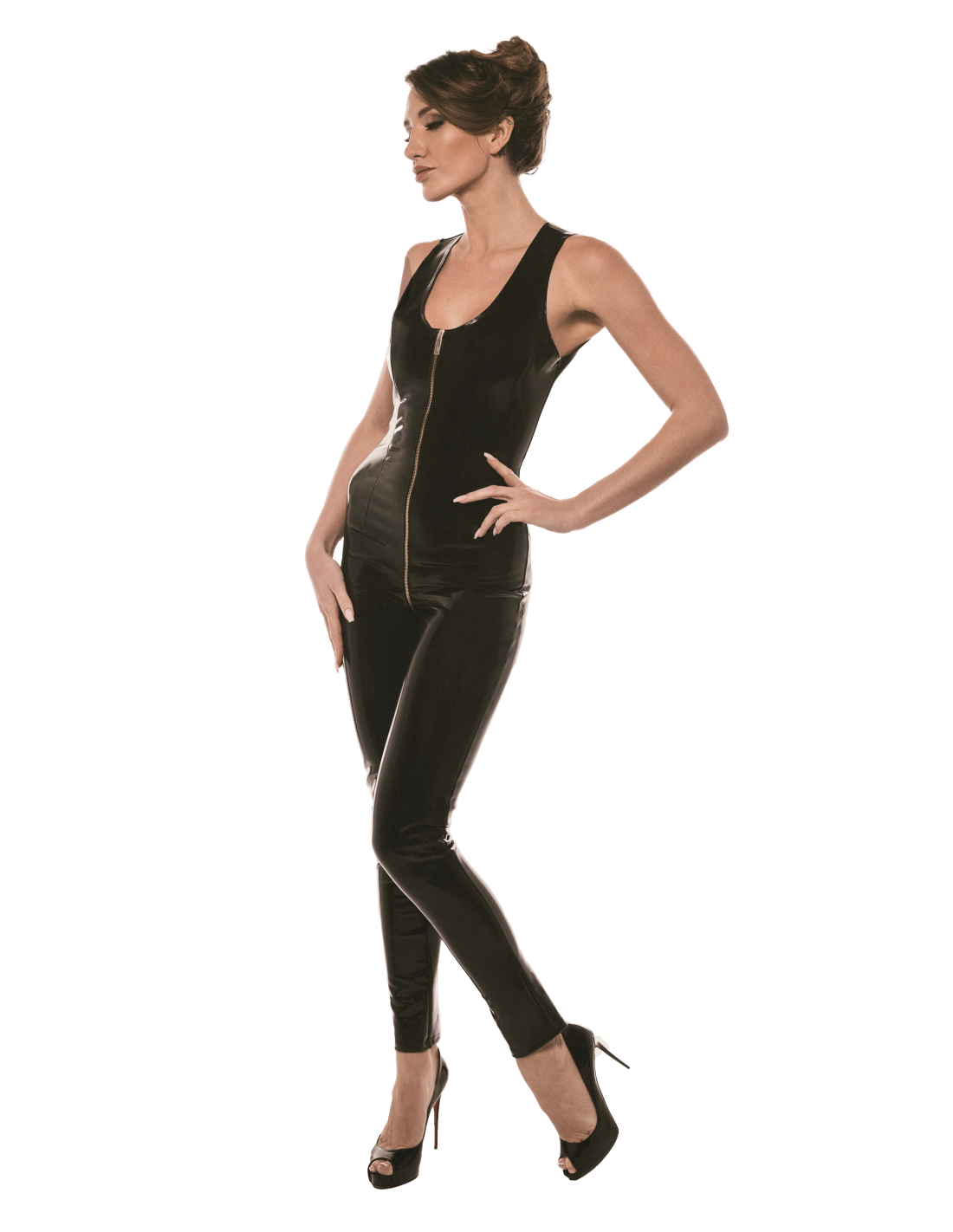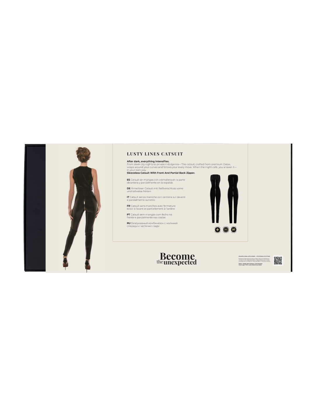 Lusty Lines Catsuit – Catsuit sin mangas con cremallera frontal